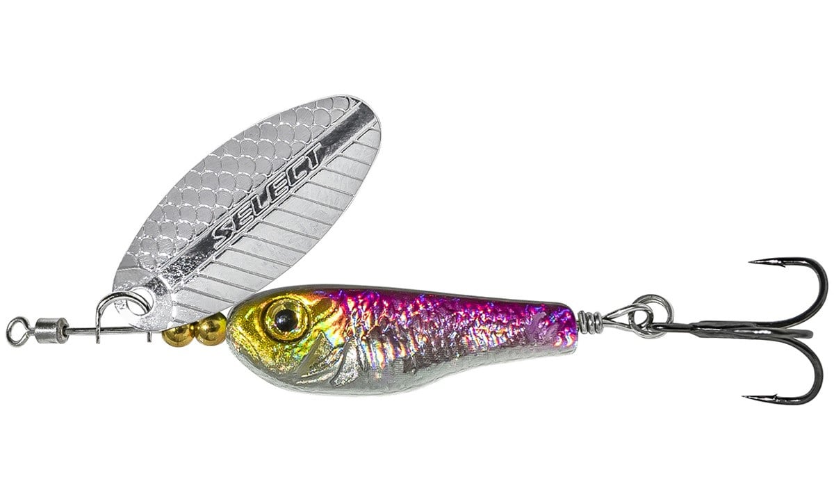 Блесна Select Heli-X - совершенная вертушка для рыбалки на течении. Сердечник сделан в форме малька, он изготовлен из тяжелого металла и имеет асимметричную форму. Благодаря этому, приманка хорошо держит течение и её можно забросить достаточно далеко. Вместо передней петли на оси блесны вмонтирован вертлюжок, который вместе с асимметричным сердечником, максимально уменьшает закручивание шнура во время рыбалки. Лепесток имеет рельефную текстуру в виде чешуи рыбы, что создает в воде дополнительные привлекательные блики. Конструкция этой вертушки позволяет использовать ее не только на течении. Heli-X быстро включается в работу даже в стоячей воде, и даже больше, её можно проводить на довольно медленной скорости, что очень нравится пассивному хищнику. Основные трофеи этой блесны: окунь, щука, голавль, жерех и язь, а также форель и хариус, если они есть в водоеме.