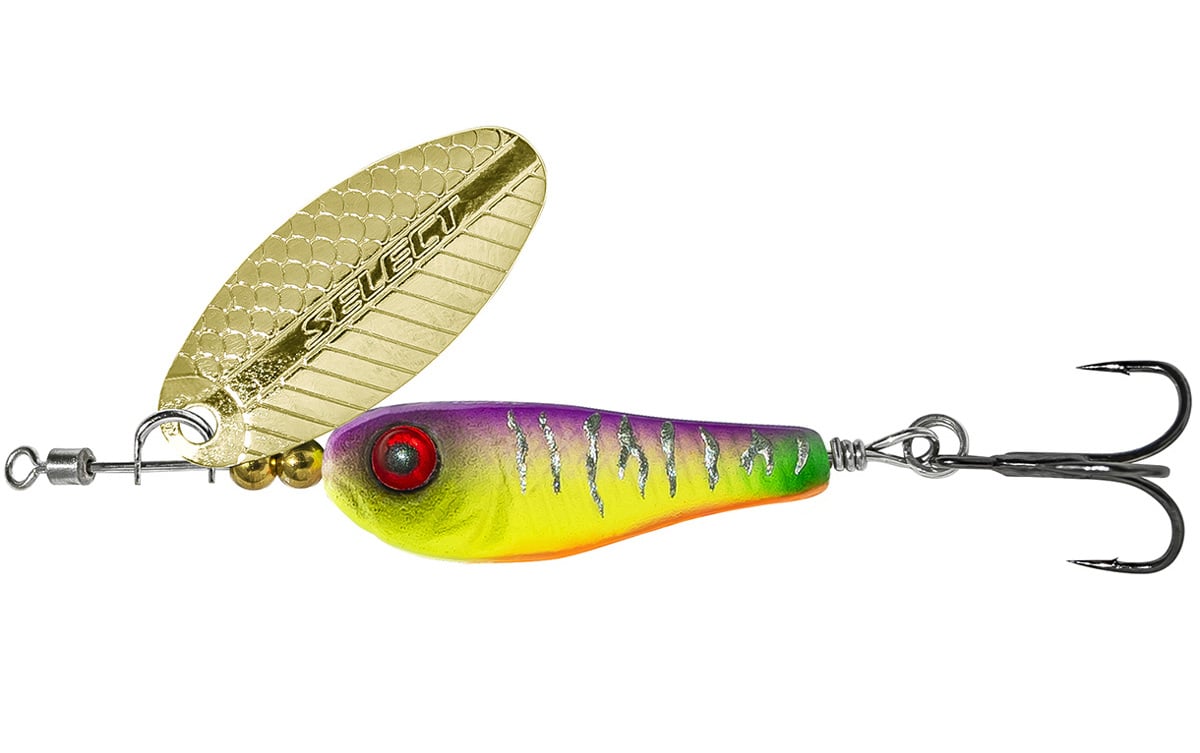 Блесна Select Heli-X - совершенная вертушка для рыбалки на течении. Сердечник сделан в форме малька, он изготовлен из тяжелого металла и имеет асимметричную форму. Благодаря этому, приманка хорошо держит течение и её можно забросить достаточно далеко. Вместо передней петли на оси блесны вмонтирован вертлюжок, который вместе с асимметричным сердечником, максимально уменьшает закручивание шнура во время рыбалки. Лепесток имеет рельефную текстуру в виде чешуи рыбы, что создает в воде дополнительные привлекательные блики. Конструкция этой вертушки позволяет использовать ее не только на течении. Heli-X быстро включается в работу даже в стоячей воде, и даже больше, её можно проводить на довольно медленной скорости, что очень нравится пассивному хищнику. Основные трофеи этой блесны: окунь, щука, голавль, жерех и язь, а также форель и хариус, если они есть в водоеме.