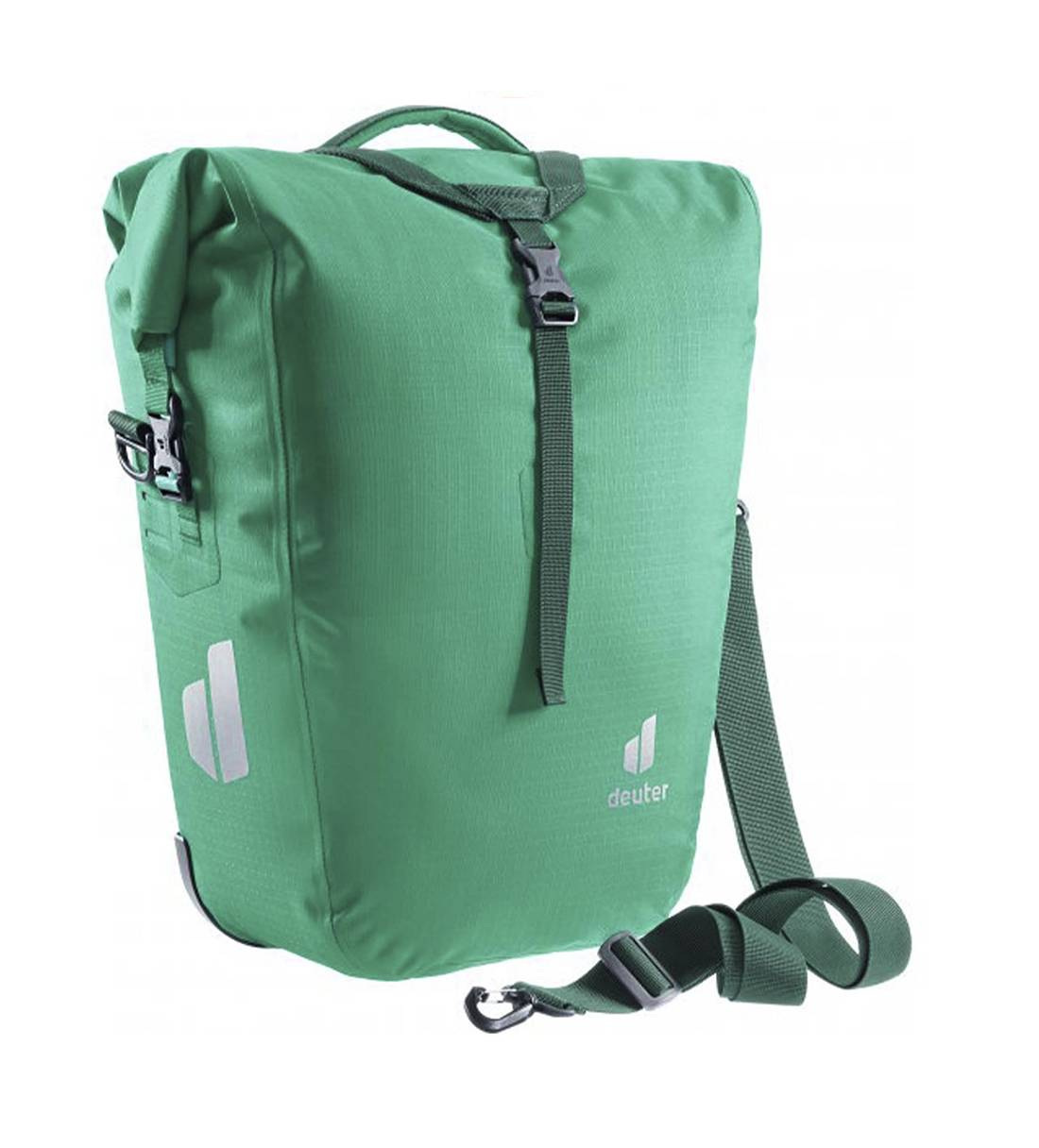 Сумка Deuter Weybridge 20+5 – практичная водонепроницаемая сумка для велосипеда, способная защитить ваш багаж от дождя или брызг воды. Благодаря закручивающейся двусторонней застежке объем можно увеличить еще на 5 литров. Недавно разработанный крепеж BagFix обеспечивает максимальную свободу передвижения, поскольку нагрузка 100% занимает заднее колесо, а не спина байкера. Сумку можно снять с багажника одним движением и использовать как обычную сумку через плечо. Вряд ли есть какие-либо ограничения по ее использованию.