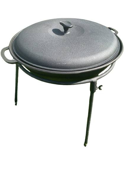 Набор: Казан чугунный узбекский 8 л WOK с чугунной крышкой и треногой в комплекте (толстостенный)