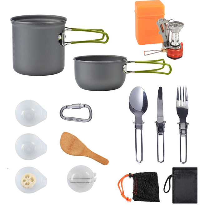 Набор посуды для кемпинга DS-101 с газовой печкой 12 предметов OEM Серый (DS-101)