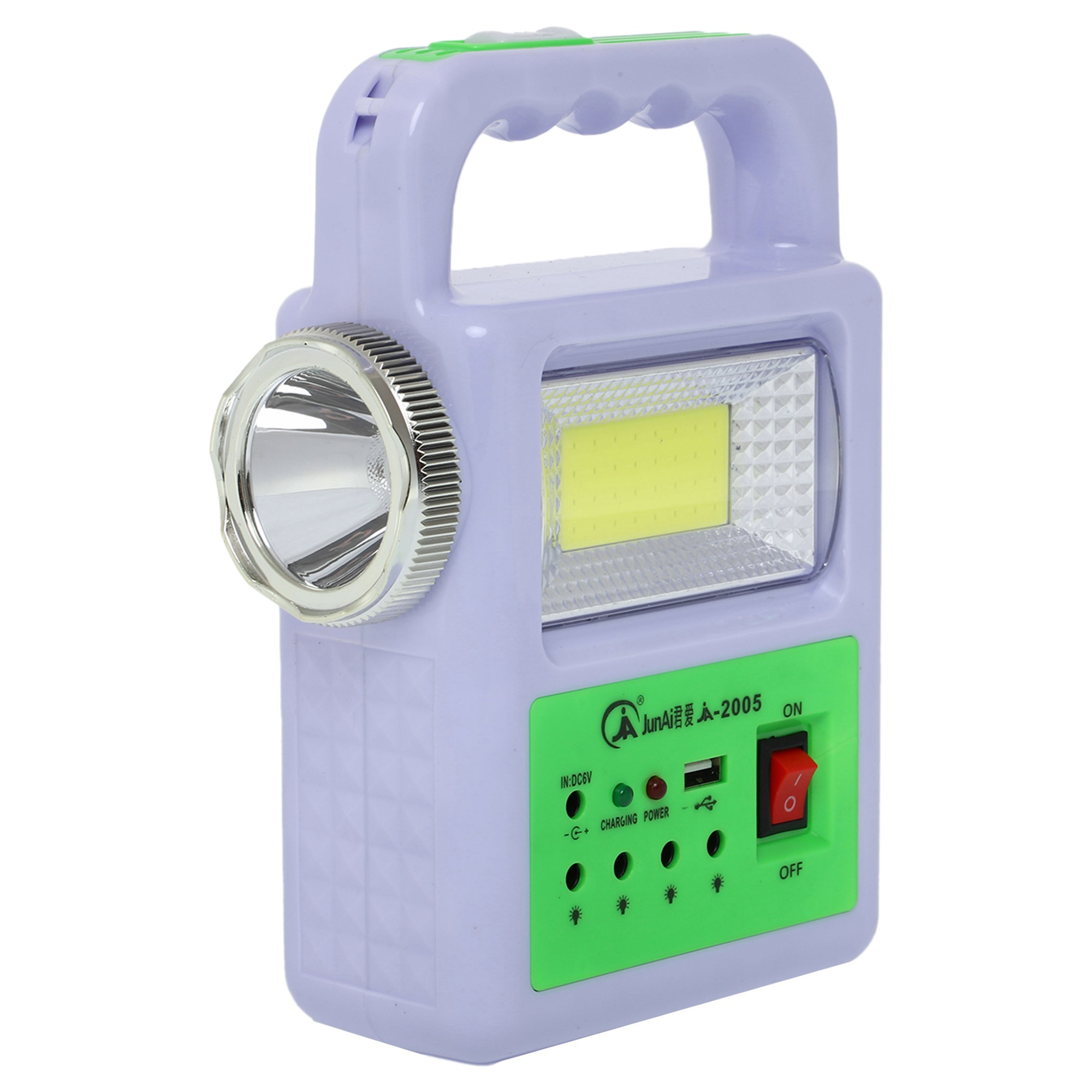 Переносной фонарь-прожектор можно использовать как автономный источник света во время рыбалки, охоты, отдыха на природе или для дома. Аксессуар работает от мощного аккумулятора, который можно заряжать от сети 220 В. Прибор имеет встроенную солнечную панель, она обеспечивает возможность подпорядки в светлое время суток. Специальный разъем на корпусе позволяет подключить к фонарю внешнюю солнечную панель.