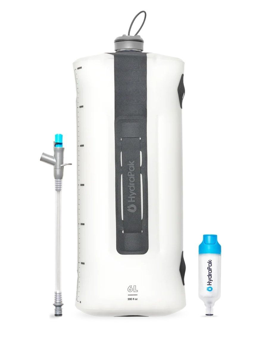 Мягкая емкость для воды объемом 6 литров с фильтром HydraPak. Отличный выбор для путешествий, треккингов и туризма. В сложенном виде бутылка сжимается, что очень удобно при транспортировке. Фильтр удаляет бактерии и простые микроорганизмы с ресурсом 1500 литров воды со скоростью очистки 1 л в минуту. На крышке есть специальная петля, за которую можно прицепить бутылку к рюкзаку или нести в руке. Емкость можно замораживать, она полностью герметична, не волнуйтесь, что напиток прольется. Изготовлен из экологически безопасных материалов, не содержит BPA&PVC.