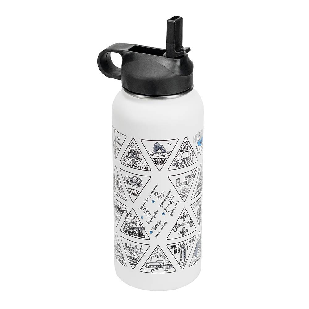 Heritage H2O – это больше, чем просто термобутылка. Это ваш персональный гид по невероятным местам Украины, которые ждут открытия! На его поверхности – 34 черно-белых иллюстраций известных и неизведанных уголков нашей страны, приобретающих цвет благодаря наклейкам, идущих в комплекте. С каждым новым путешествием вы добавляете стикер, и бутылка становится живой картой ваших приключений! Созданный из крепкой двухслойной нержавеющей стали, этот стильный аксессуар поддерживает температуру напитков и идеально подойдет для любых условий – от прогулок по городу до горных подъемов. Широкая горловина, удобная крышечка с носиком и трубочкой, а также кольцо под карабин делают его не только эстетически привлекательным, но и суперфункциональным. Термобутылка Heritage H2O – это не просто вещь, это часть вашей истории, вдохновение для новых достижений и постоянное упоминание о безграничных горизонтах путешествий.