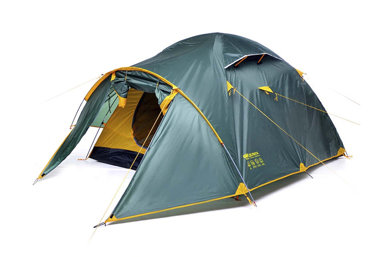 Универсальная двухслойная трехместная туристическая палатка Дельта: - классическая купольная форма для максимально быстрой установки; - дюраполевой каркас из трех дуг; - два тамбура, один из которых имеет увеличенный размер; - два входа, защищенные антимоскитными сетками каждый; - все тентовые швы проклеены для максимальной водостойкости; - два вентиляционных клапана. Характеристики: - Размер: 210x210x130 см - Высота купола: 130 см. - Количество тамбуров: 2 - Количество мест: 3 - Количество входов: 2 - Материал внешнего тента: Полиэстер 75DX75D 190T RipStop - Материал внутреннего тента: 100% дышащий полиэстер 68DX68D 190T - Материал дна: Полиэстер 75DX75D 190T RipStop - Каркас: Durapol 8.5 мм. - Водостойкость: Тент - 6000 мм водяного столба, Дно - 8000 мм водяного столба - Форма: Полусфера - Длина тамбуров: 110 см и 50 см.