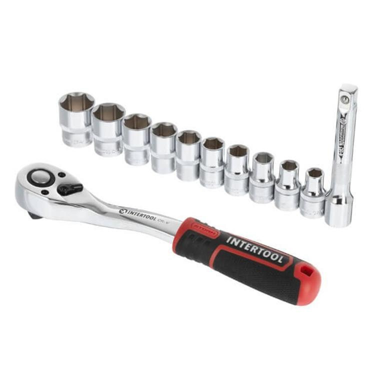 Набор головок Cr-V STORM INTERTOOL ET-8014 1/2" 10-24 мм, удлинитель, 12 ед.