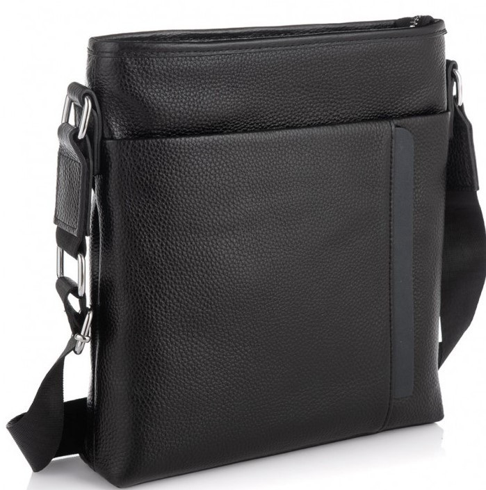 Чоловіча сумка виготовлена з натуральної шкіри чорного кольору. Особливості: має одне основне відділення, що закриваються на блискавку. Всередині головного відділення є кишеня-перегородка на блискавці, невелика кишеня відкритого типу і одна кишеня на блискавці З лицьового боку розташована кишеня відкритого типу З задньої частини месенджер має кишеню на блискавці Месенджер має середню жорсткість, тому відмінно тримає форму. Підкладка – текстиль. Плечовий ремінь регулюється по довжині.