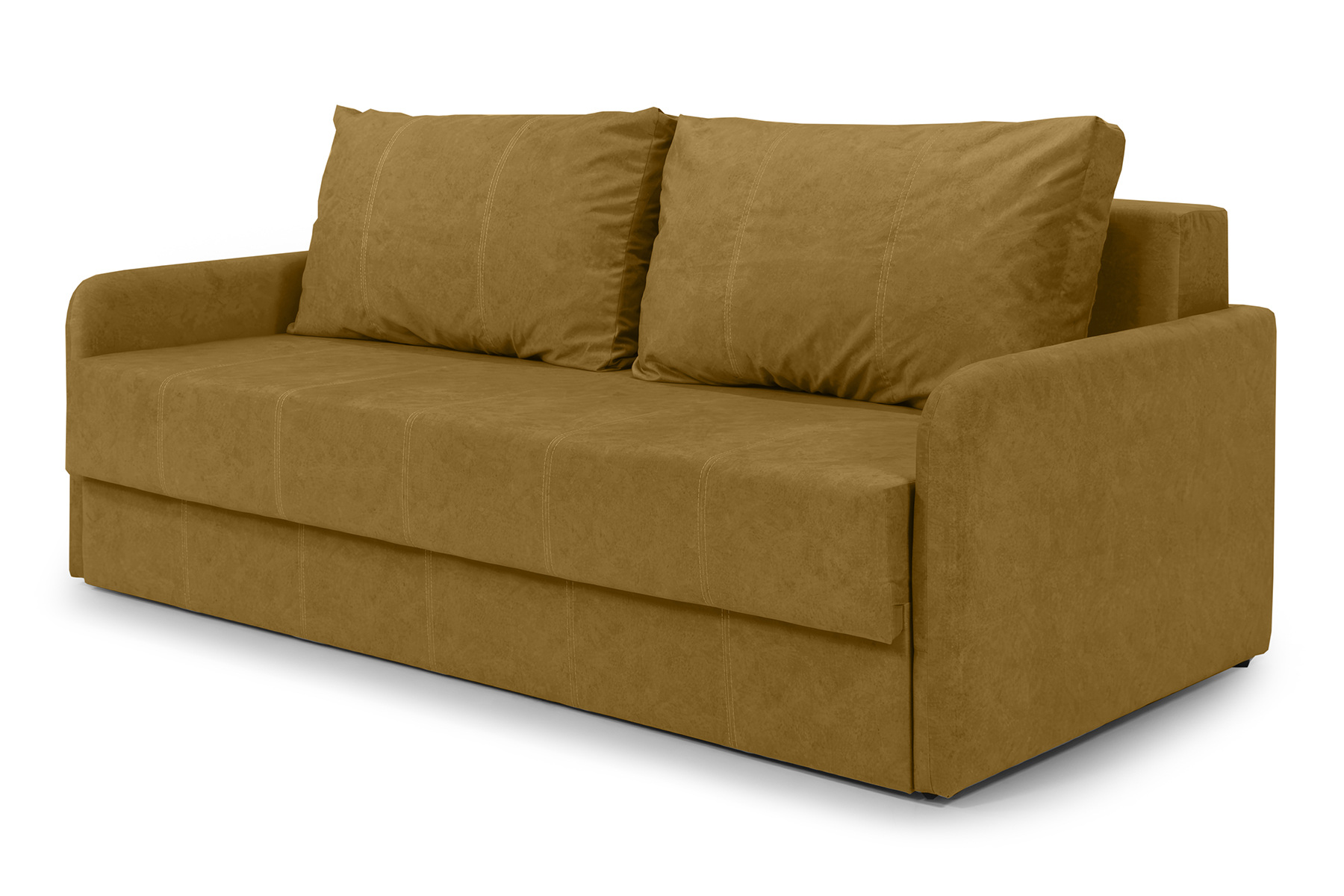 Диван легко трансформується у просторе спальне місце, що робить його практичним вибором для тих, хто цінує функціональність. Адже під сидінням є містка ніша для зберігання постільної білизни або інших речей. Дві м'які подушки додають не тільки зручності, але й забезпечують підтримку для спини під час вашого відпочинку.