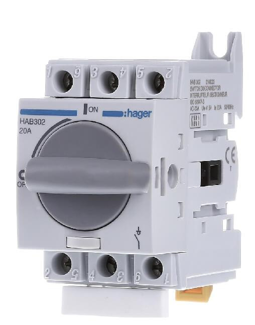Характеристики товару Рубильник Hager HAB302 3P 20А