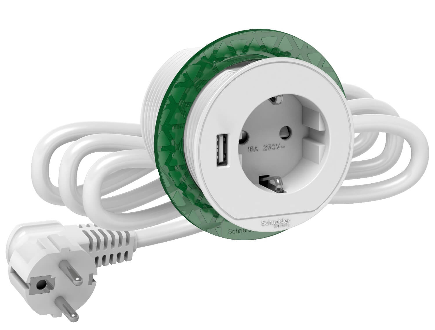 Встраиваемый в стол розеточный блок Schneider Electric INS44004 (2К+З)+USB тип А (белый)