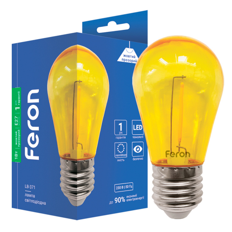 Опис Світлодіодна декоративна лампа Feron LB-371 1Вт E27 желтая прозрачная