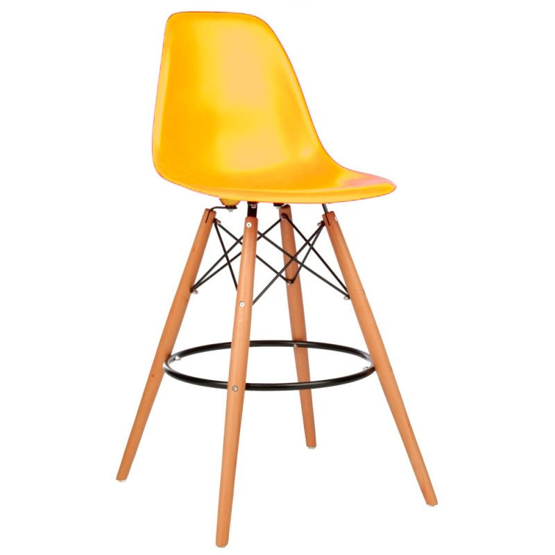 Стілець барний Тауер Вуд жовтий пластик сидіння на дерев'яних високих ніжках