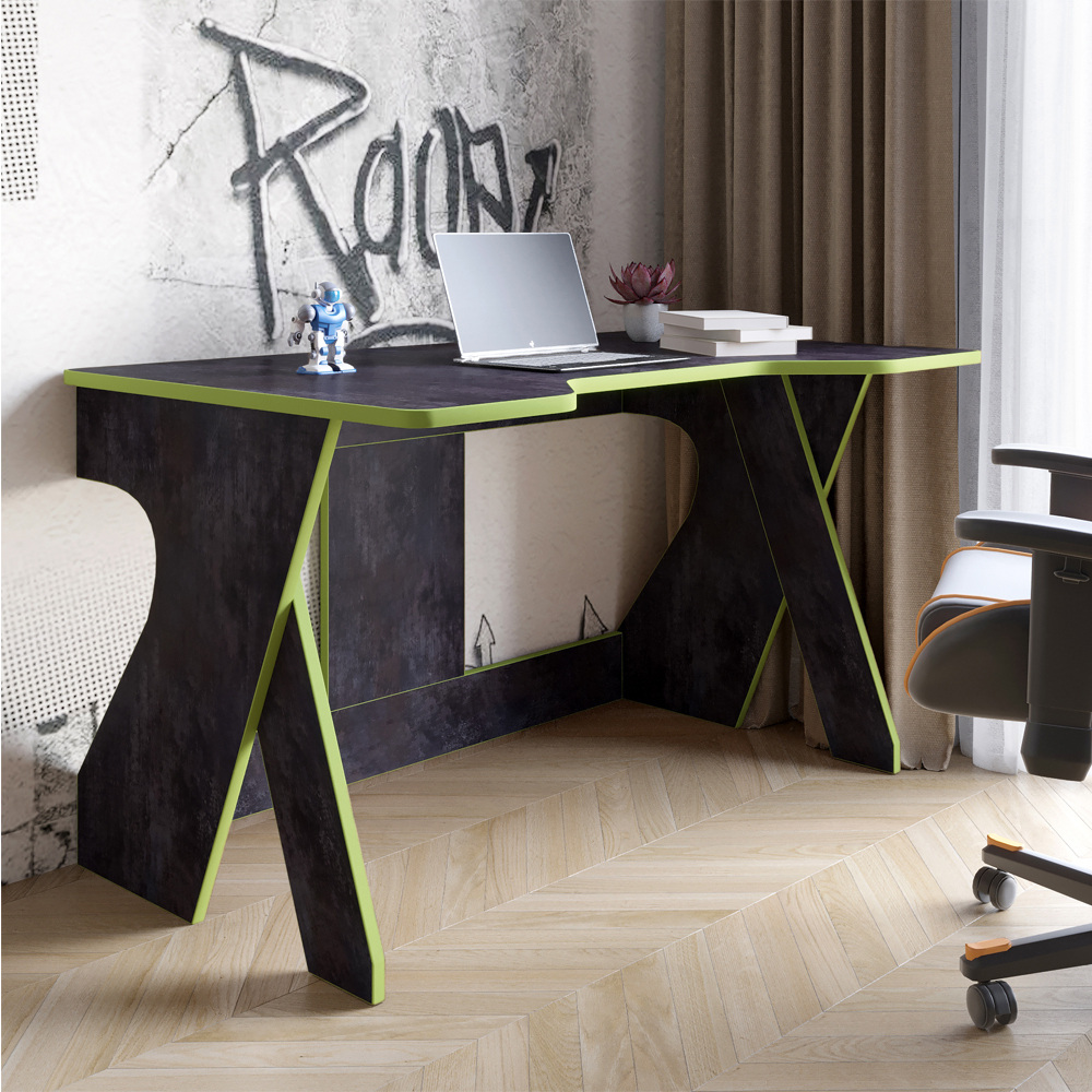 Стіл геймерський Lion Крід 130х80х74.5 Бетон темний/Зелений (LION-041732)