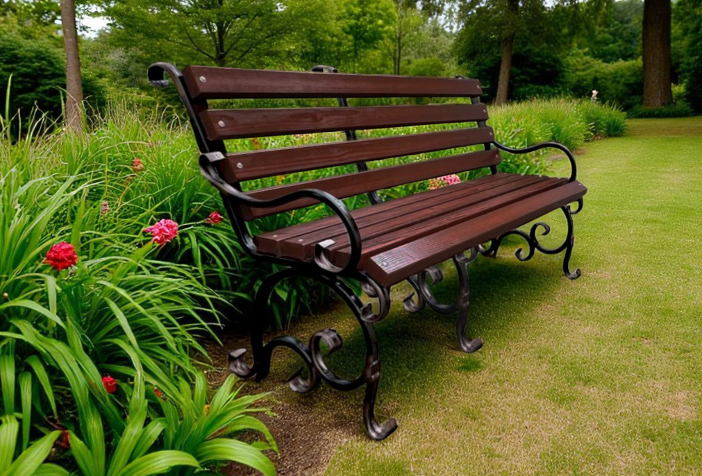Лавка садова кована Tobi Sho Дольче з підлокітниками для дачі, тераси 150 см колір каштан