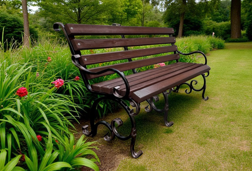 Лавка садова кована Tobi Sho Дольче з підлокітниками для дачі, тераси 130 см колір горіх