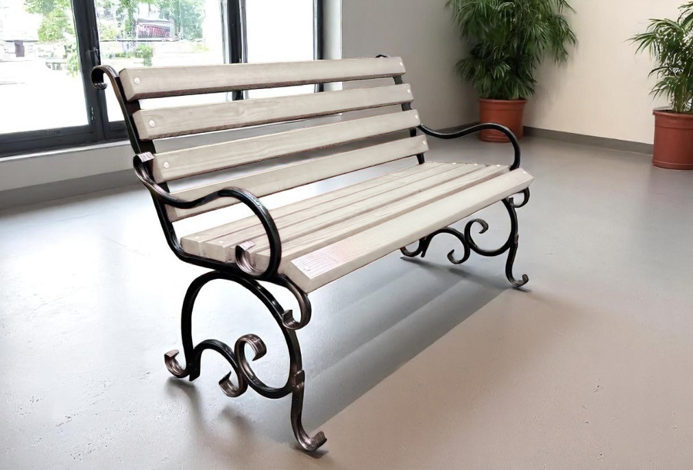 Лавка садова кована Tobi Sho Дольче з підлокітниками для дачі, тераси 150 см колір слонова кістка