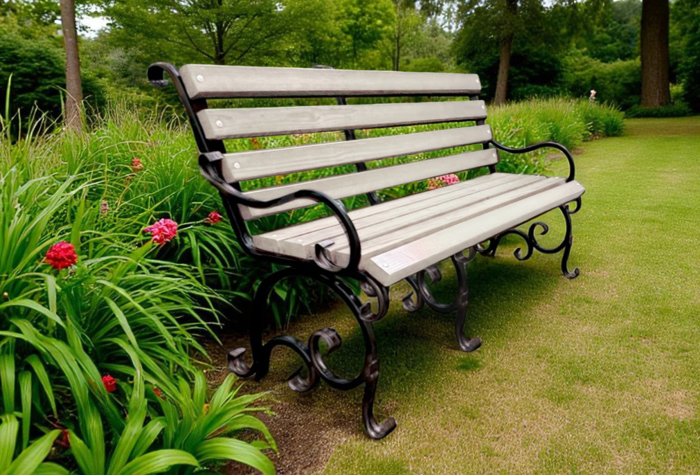 Лавка садова кована Tobi Sho Дольче з підлокітниками для дачі, тераси 260 см колір слонова кістка