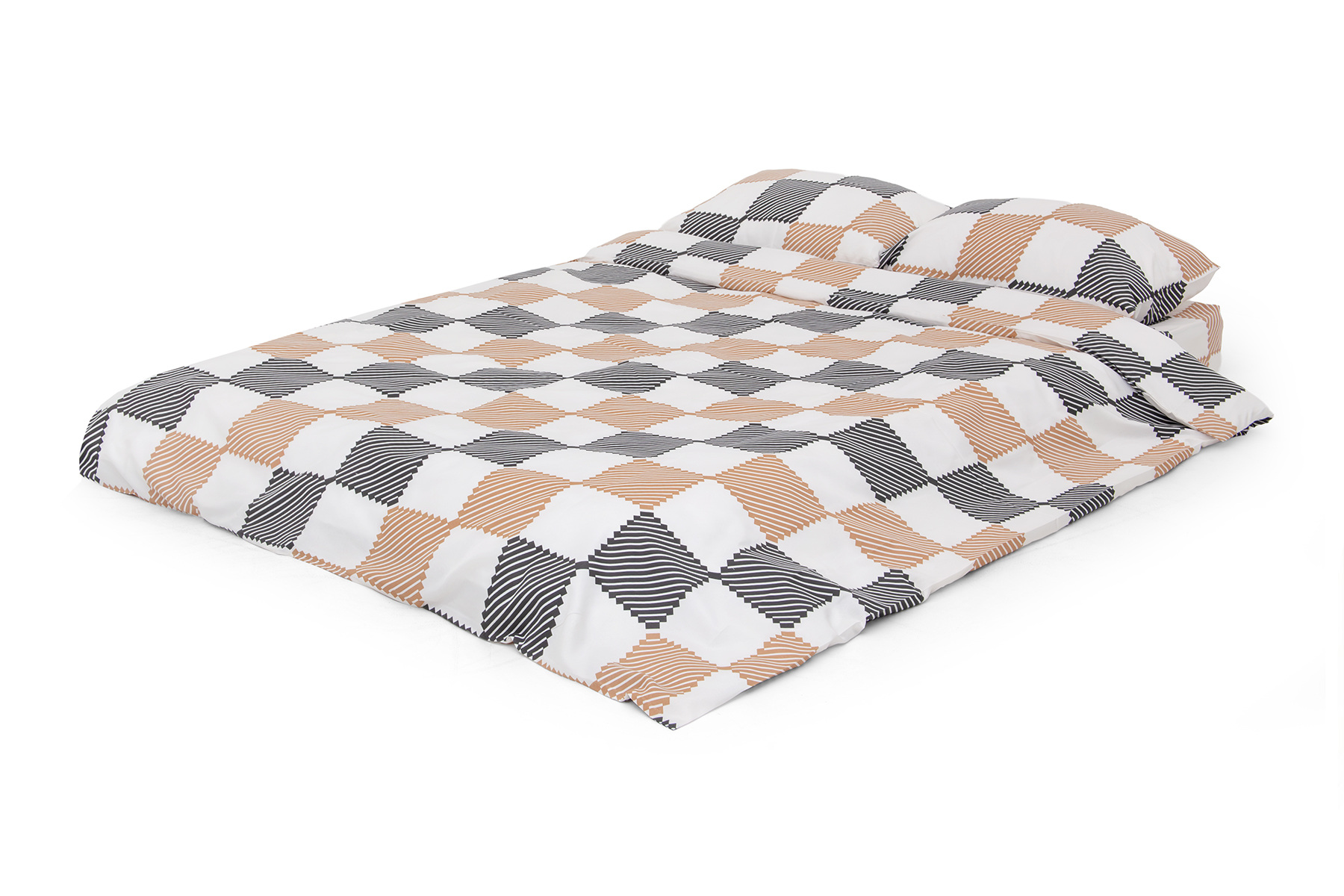 Опис Комплект постільної білизни Артеміда-14 (євро, поліестер, наволочки: 50х70 см 2 шт та 70х70 см 2 шт, клітинка, бежевий з чорним) IMI