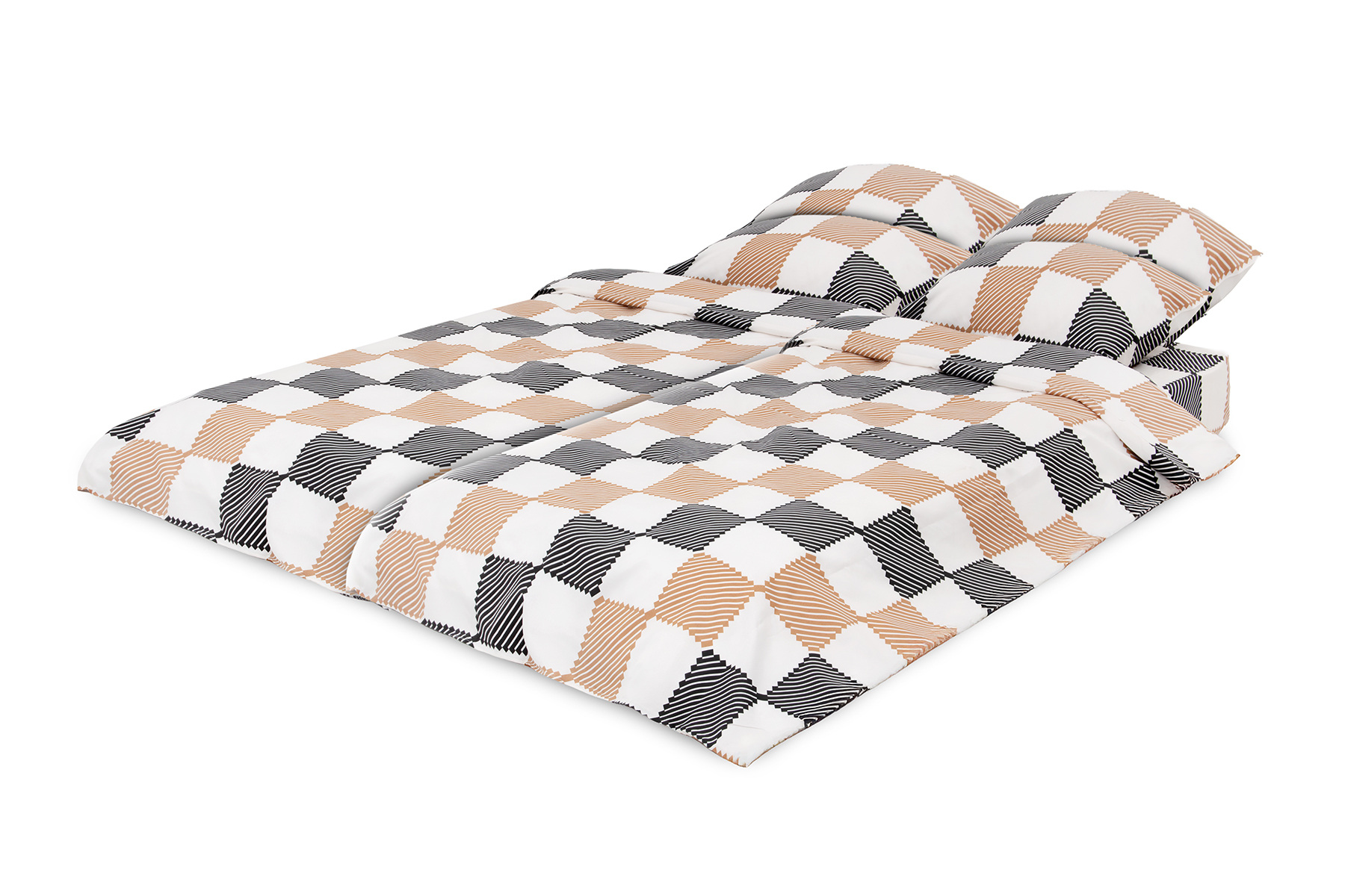 Опис Комплект постільної білизни Артеміда-14 (сімейний, поліестер, наволочки: 50х70 см 2 шт та 70х70 см 2 шт, клітинка, бежевий з чорним) IMI