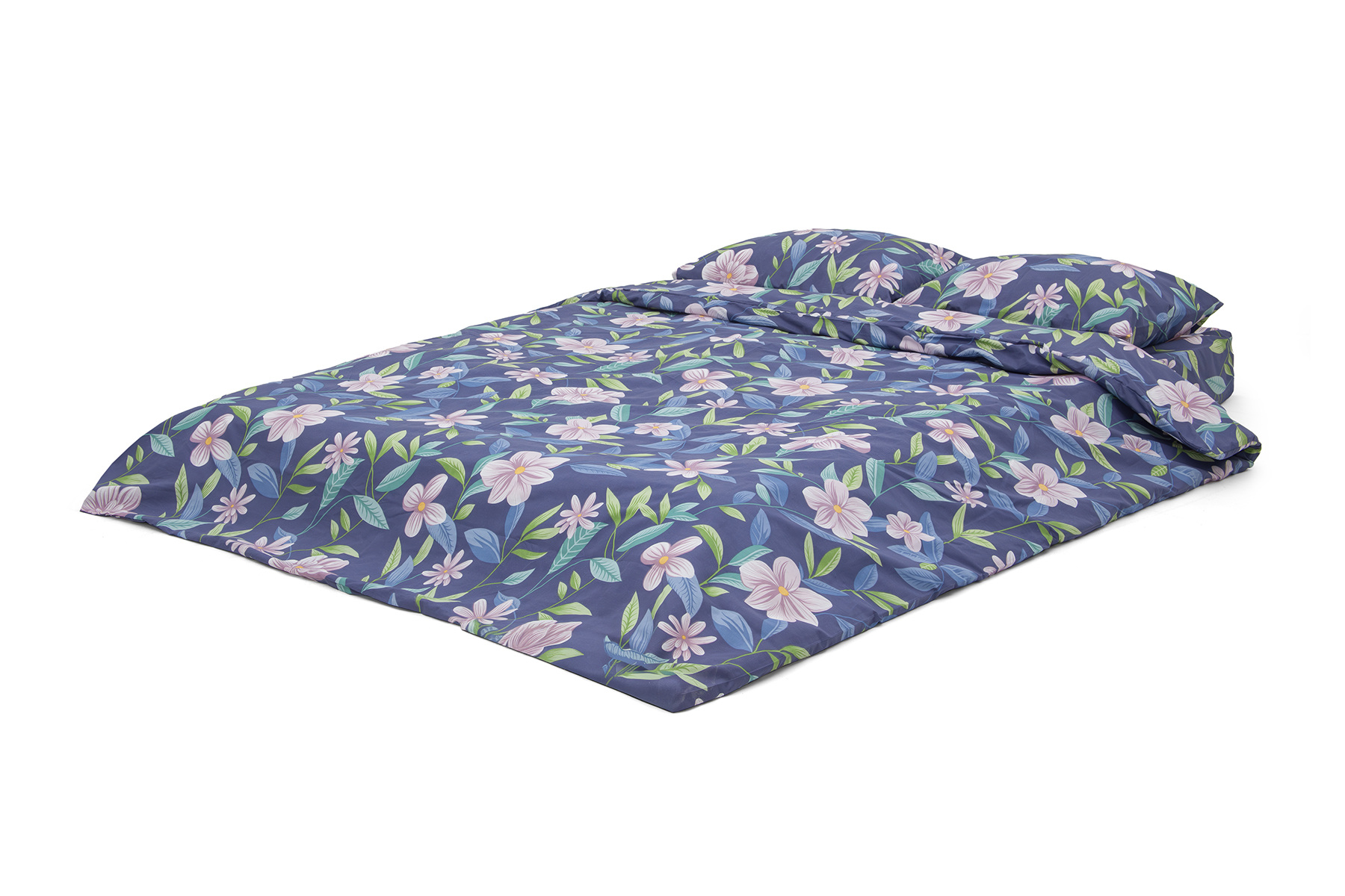 Набір постільної білизни, виготовлений з комбінованої тканини (50% бавовна, 50% поліестер) щільністю 125 г/м², поєднує в собі найкращі властивості натуральних і синтетичних волокон. Бавовна забезпечує м'якість, повітропроникність і комфорт, тоді як поліестер додає міцності, довговічності та стійкості до зминання. Тканина має приємну на дотик текстуру і легкий блиск.