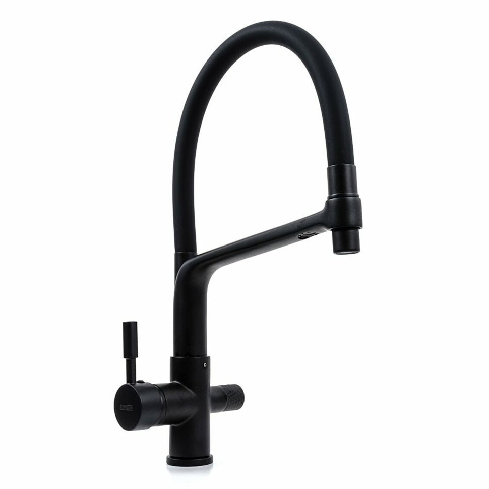 Використовуючи підключення до водопроводу та фільтру, ви можете бути впевнені, що вода, яку ви використовуєте, завжди буде чистою та якісною. Чорний гнучкий гусак додає певного шарму до змішувача, створюючи сучасний образ.