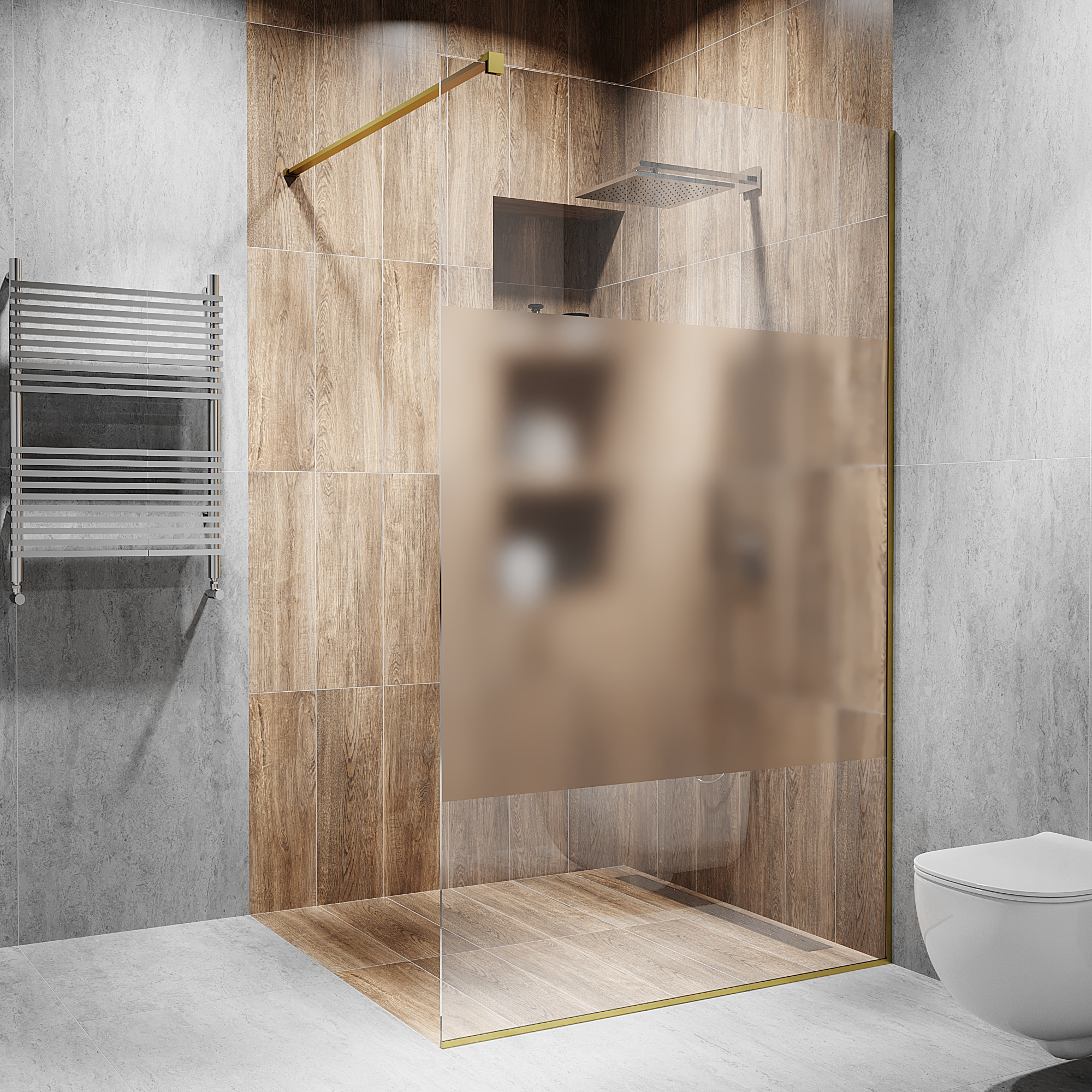 Опис Скляна душова перегородка 2000х600мм. скло: діамант, інтим зона, колір фурнітури: Gold - Золото поліроване