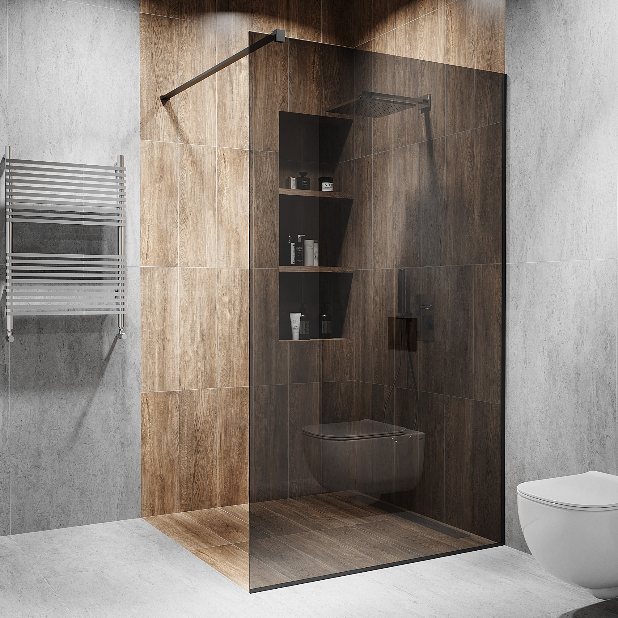 Опис Скляна душова перегородка 2000х900мм. скло: графіт, колір фурнітури: Black - Чорна матова