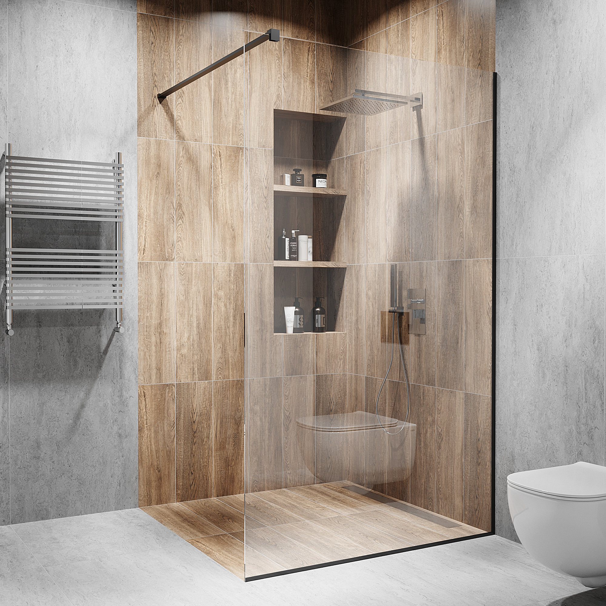 Опис Скляна душова перегородка 2000х1000мм. скло: діамант, колір фурнітури: Black - Чорна матова