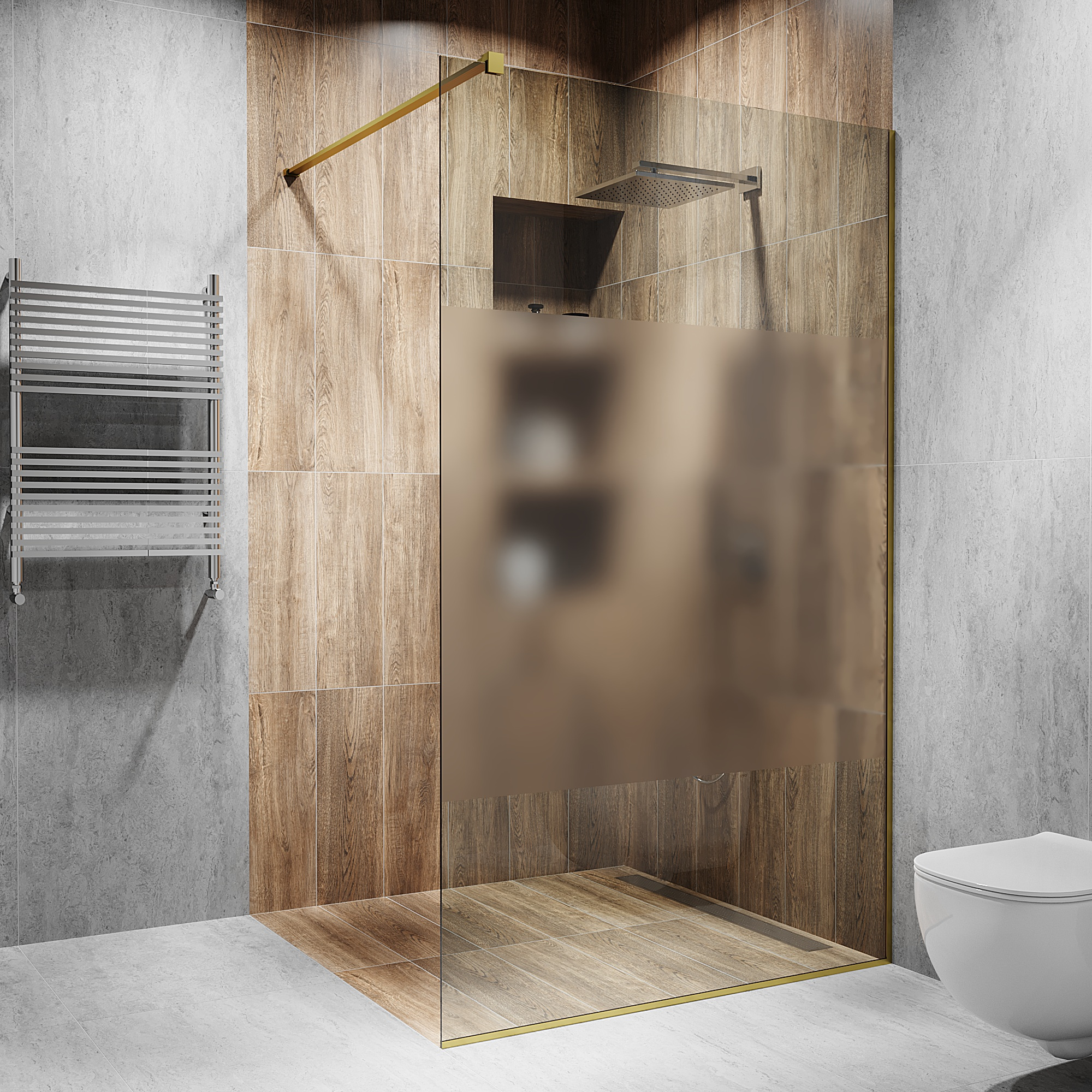 Опис Скляна душова перегородка 2000х1000мм. скло: прозоре, інтим зона, колір фурнітури: Gold - Золото поліроване