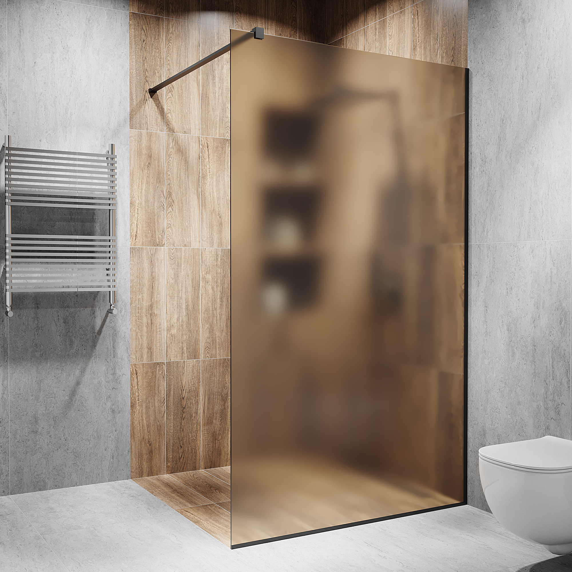 Опис Скляна душова перегородка 2000х1100мм. скло: бронза, матове, колір фурнітури: Black - Чорна матова