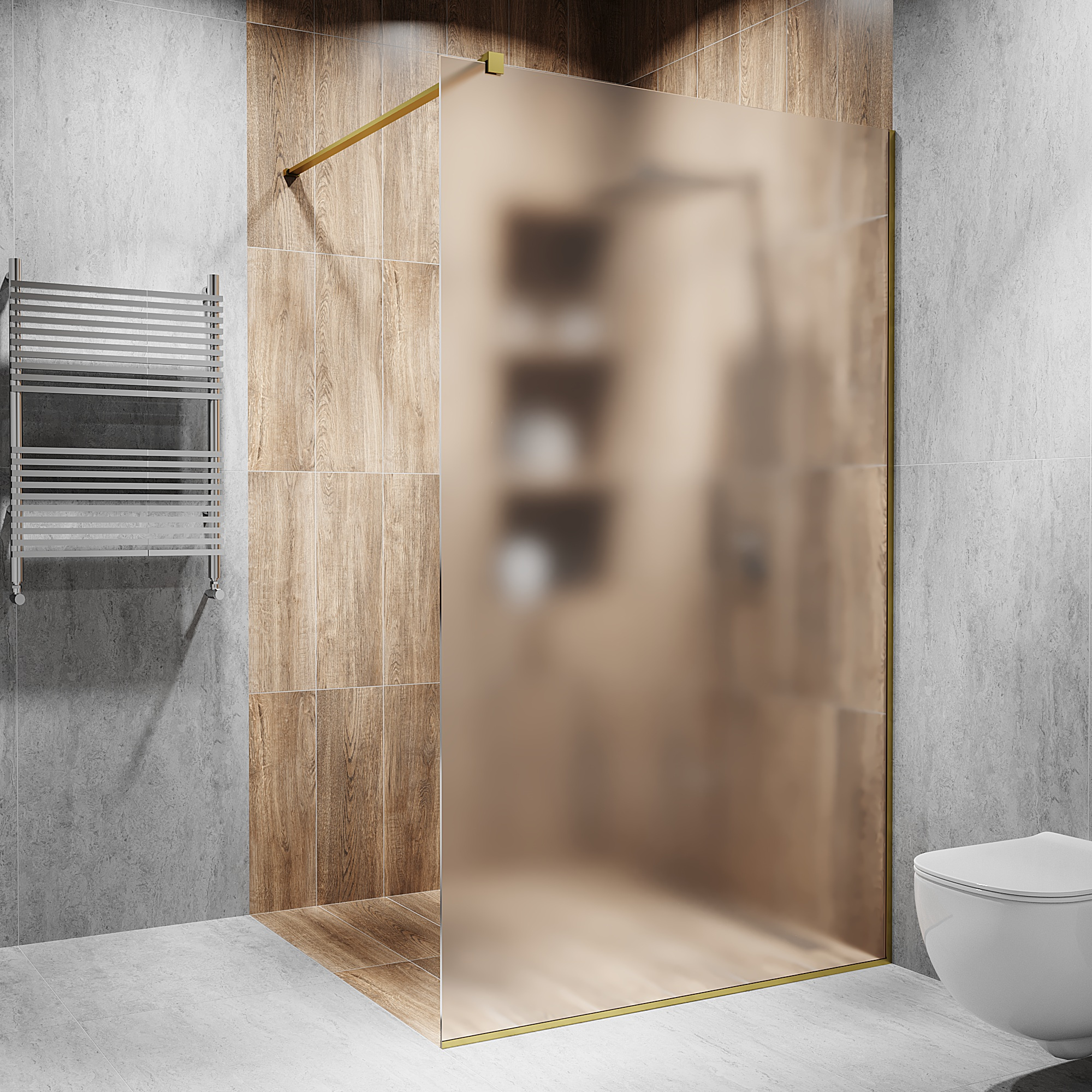 Опис Скляна душова перегородка 2000х1200мм. скло: діамант, матове, колір фурнітури: Gold - Золото поліроване