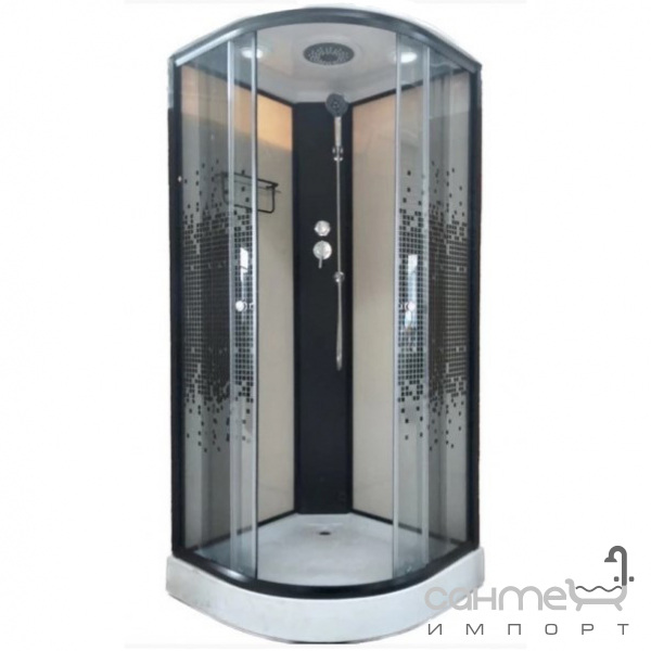 Опис Полукруглый душевой бокс на низком поддоне Atlantis Artex AR-BLT9040 профиль черный/стекло интимато
