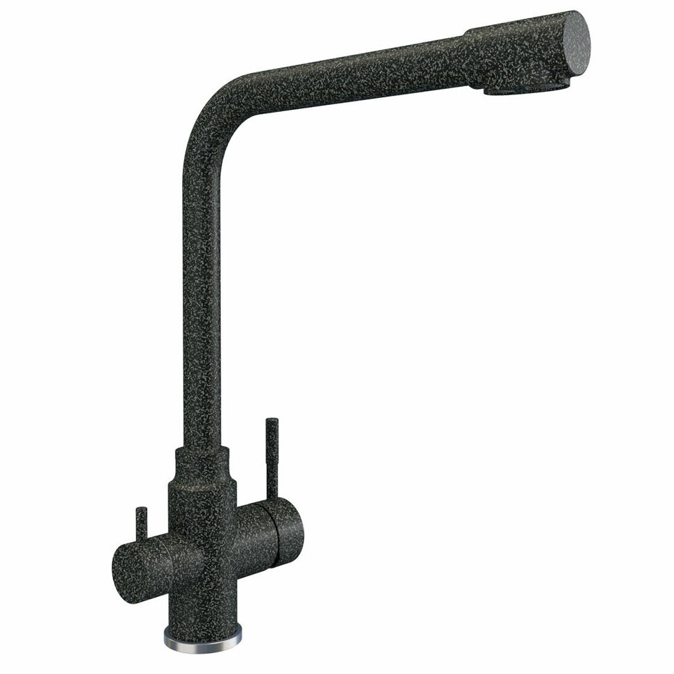 Змішувач для кухні Platinex KT 8201 у кольорі «графіт» - це універсальне та практичне рішення для тих, хто використовує системи очищення води. Модель виконана з міцних та безпечних матеріалів, корпус виготовлений з нерж. сталі з декоративним графітовим покриттям, стійким до вологи, корозії, подряпин та побутової хімії. Особливістю даної моделі є наявність окремого каналу і додаткового виливу для подачі очищеної води, що безпосередньо підключається до фільтра або системи зворотного осмосу. Це дозволяє використовувати один змішувач як для звичайної водопровідної води, так і для питної без необхідності встановлювати додатковий кран. Основний вилив зручно вигнутий, забезпечує комфортний доступ до всієї поверхні миття, а вбудований аератор формує м'який та економічний струмінь. Управління здійснюється двома рукоятками: одна регулює подачу гарячої та холодної води, друга – подачу фільтрованої. Змішувач Platinex KT 8201 - це зручне та естетичне рішення для кухні, що забезпечує комфорт та функціональність при щоденному використанні, особливо у поєднанні із системою водоочищення.