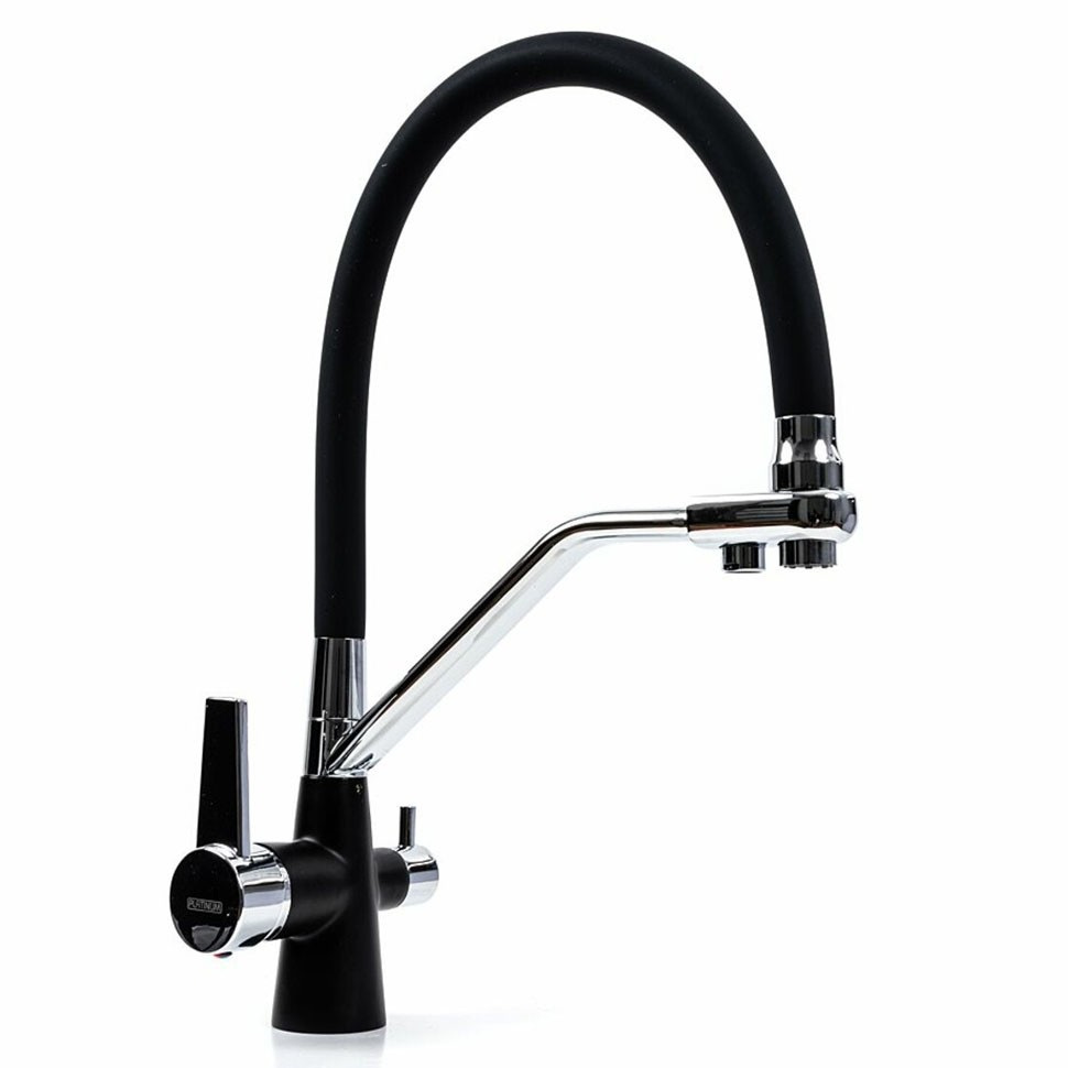 Змішувач для кухні Platinex LN077 у чорному кольорі з силіконовим гусаком та виходом під осмос – це зручне, функціональне та сучасне рішення для кухонного миття. Корпус змішувача виконаний з міцної латуні з матовим чорним покриттям, стійким до корозії, подряпин та дії вологи, що забезпечує тривалий термін служби та збереження зовнішнього вигляду. Гнучкий силіконовий гусак не лише надає виробу стильного вигляду, але й забезпечує зручність у використанні – його можна вільно спрямовувати та фіксувати у потрібному положенні для легкого доступу до будь-якої частини миття. Основний вилив призначений для подачі гарячої та холодної води, а додатковий окремий вихід використовується для підключення до системи фільтрації або осмосу, що дозволяє зручно отримувати як звичайну, так і очищену воду з одного пристрою. Управління здійснюється одноважільний механізм з плавним ходом, що забезпечує точне налаштування напору і температури. Змішувач Platinex LN077 - це практичне та універсальне рішення для кухні, де важливі комфорт, функціональність та естетика.