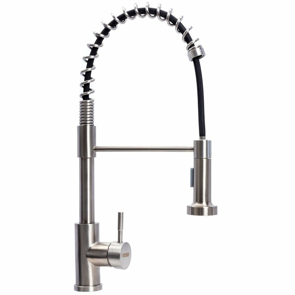 Кухонний змішувач з висувним виливом FR56 добре поєднується з сучасним дизайном кухонних мийок. Висувний поворотний вилив із пружиною полегшує миття посуду та забезпечує зручне використання в режимі вирви. Ідеально підходить для мийок із двома чашами.