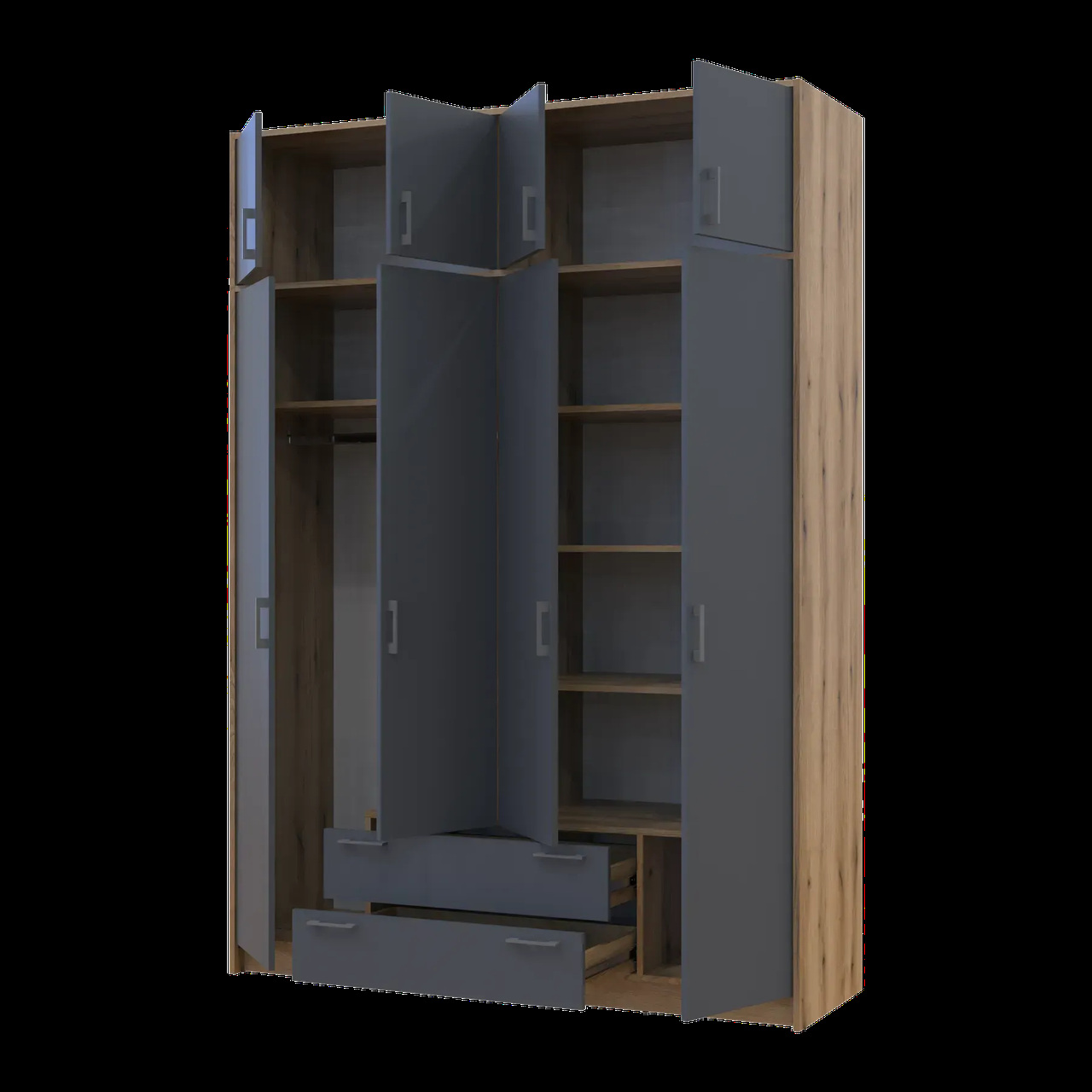 Шафа відкривна для одягу на три двері зі штангою антрессолю ящиками Doros Ронді 2 ДСП короб Дуб Артизан 2600, Графіт