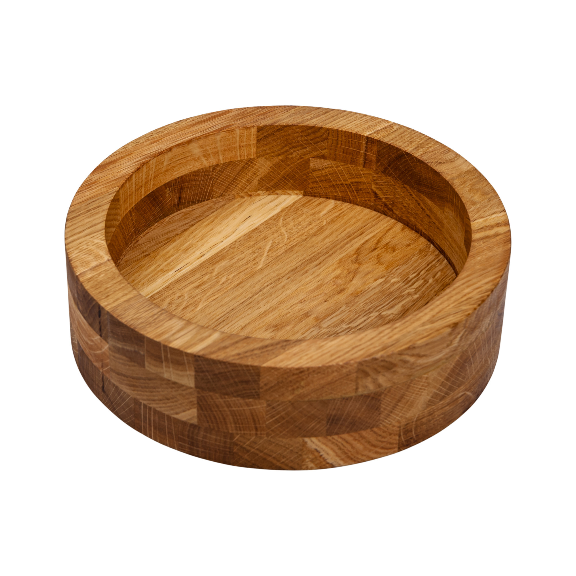 Дерев'яна дубова миска — елегантне та практичне доповнення для вашого столу. Виготовлена з високоякісного дуба, вона поєднує природну міцність і красу деревини, додаючи інтер'єру затишку та стильного вигляду. Миска ідеально підходить для подачі фруктів, закусок або навіть для використання як декоративний елемент у будь-якому інтер'єрі. Завдяки ретельно обробленій поверхні та природному малюнку дуба, кожна миска є унікальною. Її компактні розміри зручно дозволяють подавати різноманітні страви, при цьому вона виглядає елегантно на будь-якому столі. Ця миска стане відмінним вибором для тих, хто цінує натуральні матеріали та стильний дизайн. Характеристики: Виготовлена з масиву дуба Підходить для подачі фруктів Висота: 6 см Діаметр всередині: 20,6 см Зовнішній діаметр: 25 см Особливості догляду: Дерев'яні вироби можна мити тільки вручну, м'якими губками під струменем теплої води. Не можна надовго замочувати у воді, а після миття слід негайно витерти та залишити для просушування. Не зберігати вироби приміщеннях з великою вологістю Періодично (раз на місяць) вироби варто продезінфікувати горілкою або спиртом для знищення мікробів, а також для запобігання неприємного запаху. Якщо запах з'явився, то можна протерти поверхню слабким розчином оцту або лимона. Не можна ставити дерев'яні вироби в духовку, мікрохвильову піч, а також на плиту.