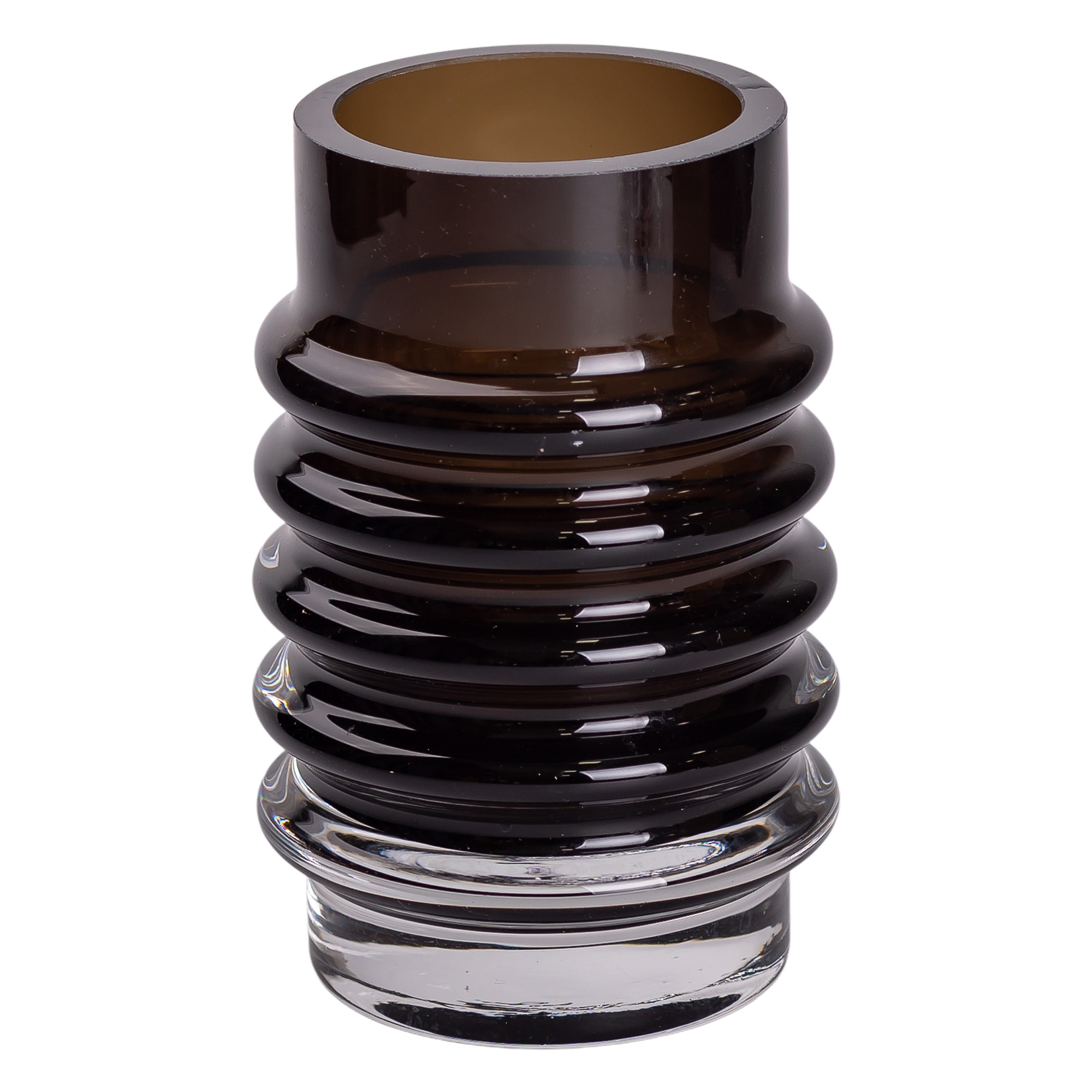 Висота вази становить 18 см, діаметр — 9.5 см, що робить її підходящою для невеликих квіткових композицій або як елемент інтер'єрного декору. Скандинавський стиль вази виражений у використанні простих геометричних форм і темного скла, що додає легкості та природної краси. Ваза ідеально підходить для того, щоб стати акцентом у будь-якому інтер'єрі, підкреслюючи його стиль та затишок.