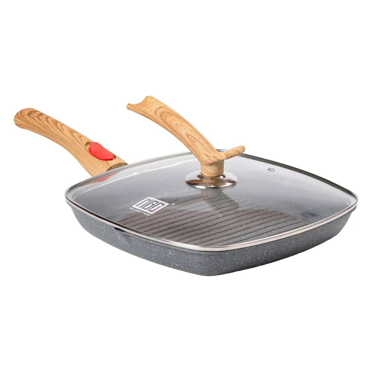 Сковорода гриль – ідеальний вибір для тих, хто стежить за здоров'ям, але не хоче жертвувати смаком страв. М'ясо, риба та овочі, приготовлені на грилі, якісно відрізняються від підсмажених на звичайній сковорідці. При цьому, вони мають апетитні хрусткі смужки, а смак таких страв розкривається по новому. Сковорода виготовлена з литого алюмінію, має антипригарне керамічне покриття, що дозволяє готувати з використанням мінімальної кількості жирів.