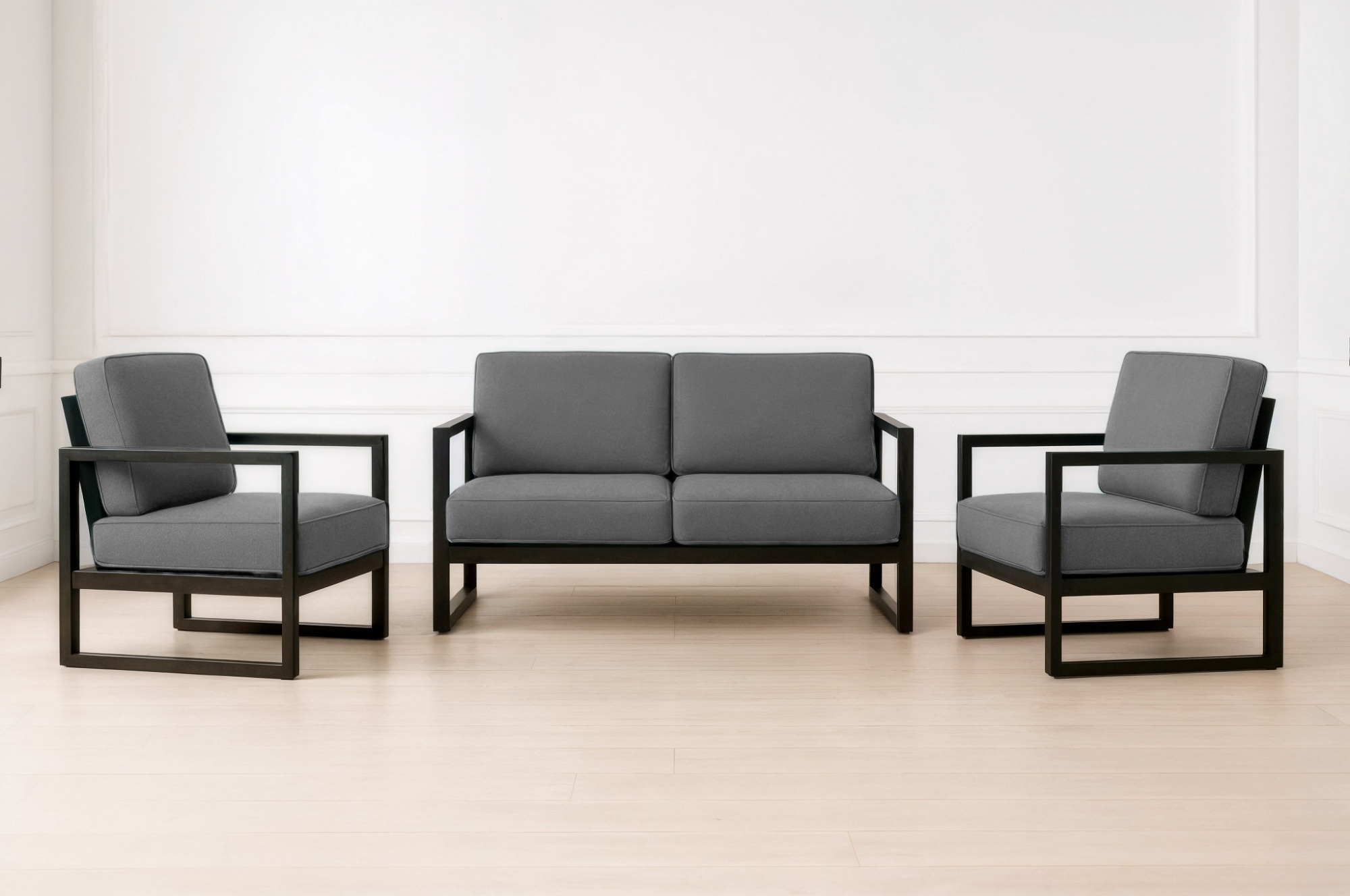 Комплект каркасних металевих меблів «Делтос» (диван та два крісла) — це стильні та міцні меблі у стилі Лофт, які однаково добре підходять для вітальні, офісу, лаунж-зони, тераси чи зони очікування. Завдяки універсальному дизайну комплект гармонійно поєднується як з класичними, так і з сучасними інтер’єрами, створюючи комфортний простір для відпочинку та спілкування.