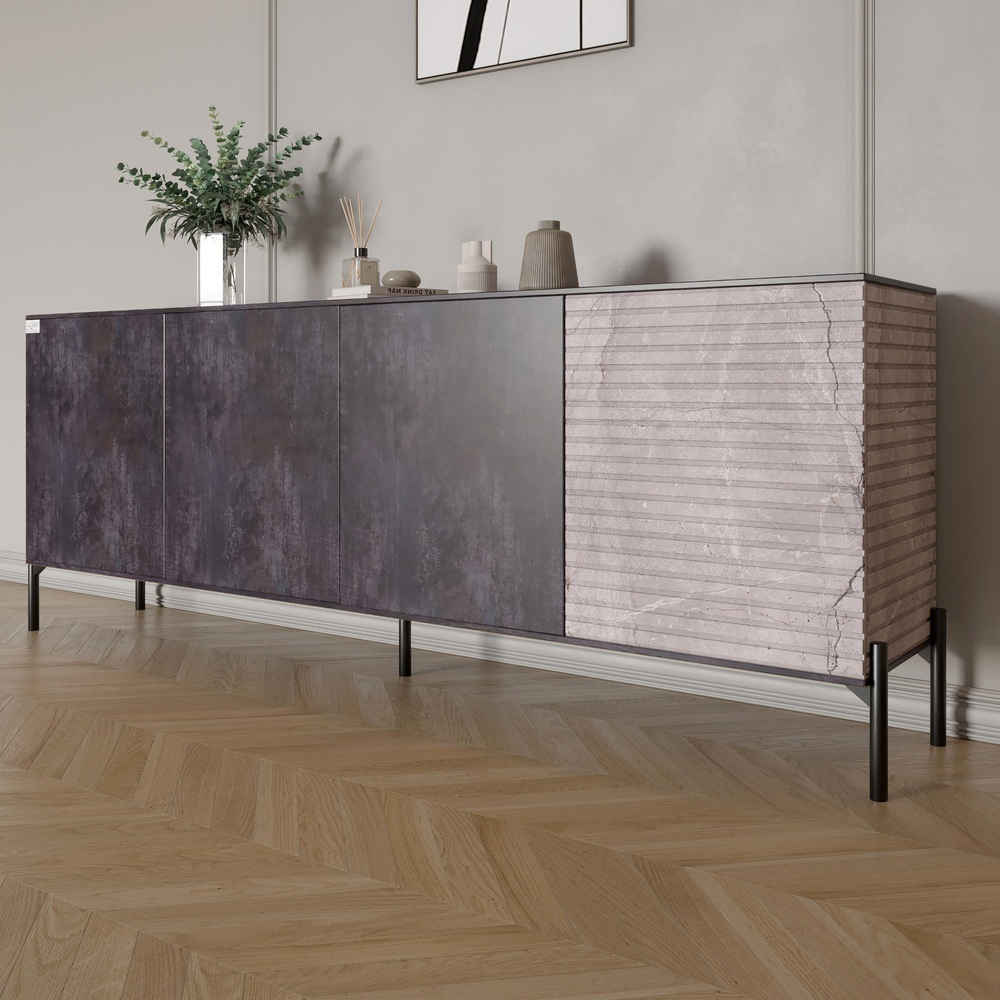 Комод LION Грей Комод із колекції «Грей» виготовлений із високоякісних матеріалів і стане чудовим рішенням для сучасного інтер'єру, що поєднує лаконічність форм і вишукані текстури. Його гладкий фасад доповнений текстурною секцією, що додає цікавий візуальний акцент, виділяючи комод на тлі інших предметів меблів. Металеві ніжки надають конструкції легкість, забезпечуючи стійкість і довговічність. Просторі секції всередині комода забезпечують зручне зберігання різноманітних речей, включно з одягом, постільною білизною, аксесуарами або документами. Завдяки своїй універсальності комод матиме чудовий вигляд у спальні, вітальні або робочому кабінеті. Матеріал виготовлення Комод виготовлений з ЛДСП SWISS KRONO - високоякісного матеріалу, що поєднує естетику з міцністю і надійністю. ЛДСП від SWISS KRONO відомий своєю стійкістю до механічних пошкоджень, вологи та високих температур, що гарантує довговічність меблів і зберігає їхній естетичний вигляд на довгі роки. Ніжки комода виготовлені з металу. Особливості 4 відділення з полицями - забезпечують максимальний комфорт у використанні та дають змогу зберігати різні речі в організованому порядку. Комод пропонує достатньо місця для зберігання білизни, аксесуарів та інших предметів. Міцні металеві ніжки - ніжки виконані з якісного металу, який витримує значні навантаження і забезпечує стабільність. Високий просвіт між підлогою і комодом дає змогу легко прибирати під ним, підтримуючи чистоту. Мінімалістичний дизайн - відсутність виступаючих ручок підкреслює мінімалістичний стиль і унеможливлює випадкові зачепи. Кромка 2 мм - захищає краї виробів від пошкоджень, надає їм естетично завершеного вигляду і підвищує довговічність меблів. Кромку виготовляють із міцних матеріалів, що дає змогу їй витримувати інтенсивне використання і зберігати привабливий зовнішній вигляд упродовж багатьох років. Розміри: Ширина: 2040 мм Глибина: 380 мм Висота: 765 мм
