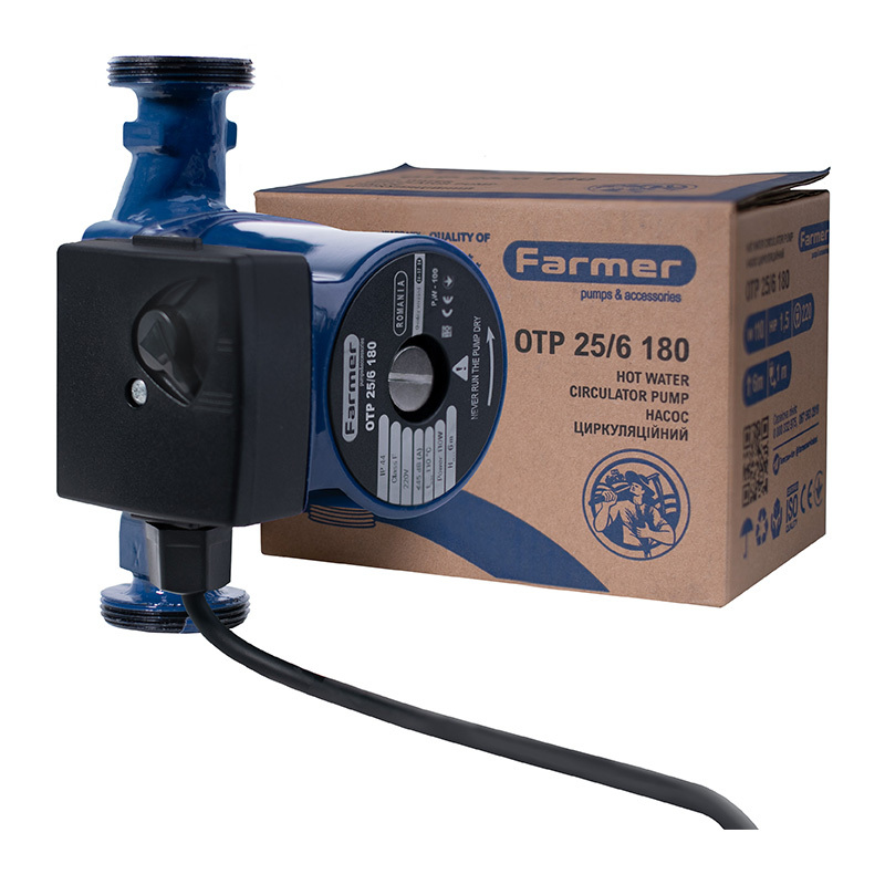 Циркуляційні насоси Farmer призначенні для забезпечення безперебійної примусової циркуляції робочих рідин (теплоносіїв) в закритих і відкритих системах опалення приміщень.