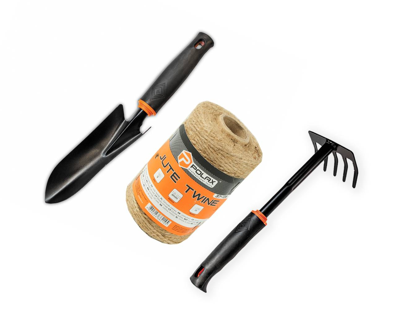 Набір садових інструментів Polax лопатка садова, культиватор і граблі міні (770-02)
