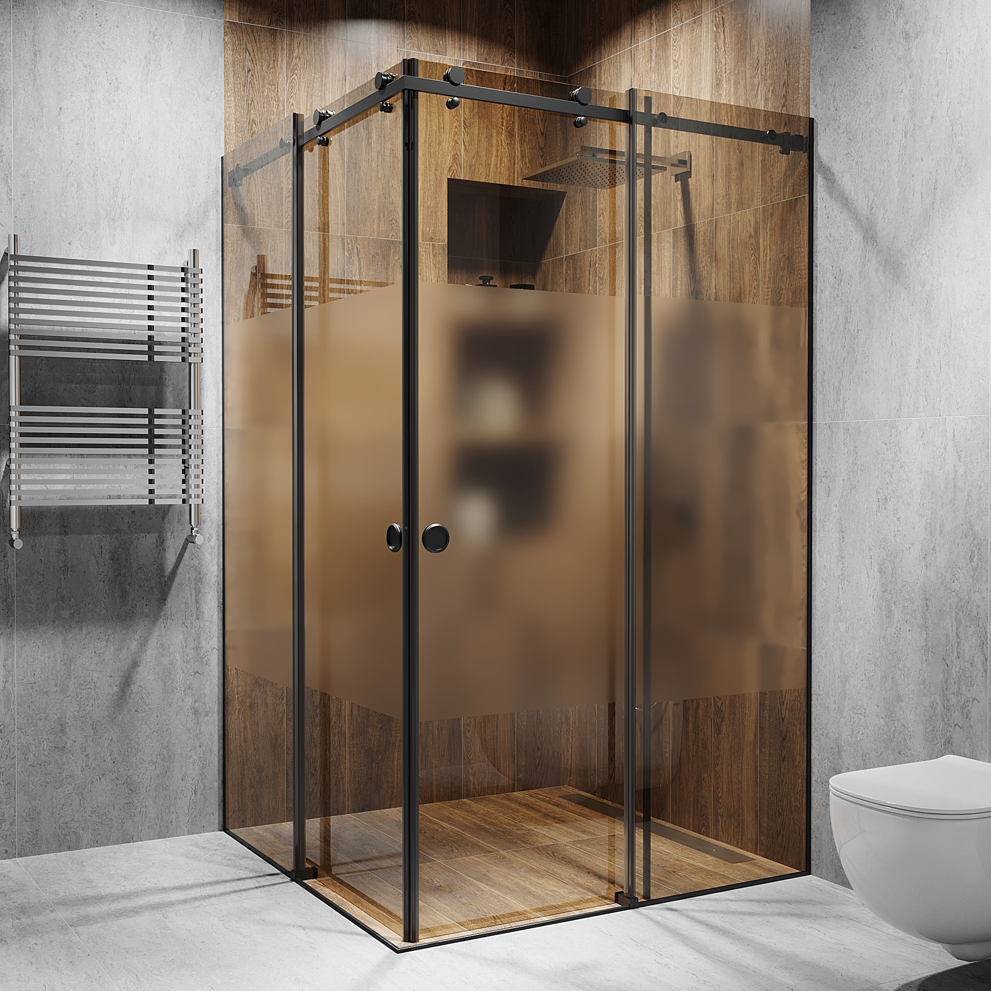 Опис Кутова розсувна душова кабіна з двома дверима 2000 мм, Бронза, Інтим зона, Black - Чорна матова