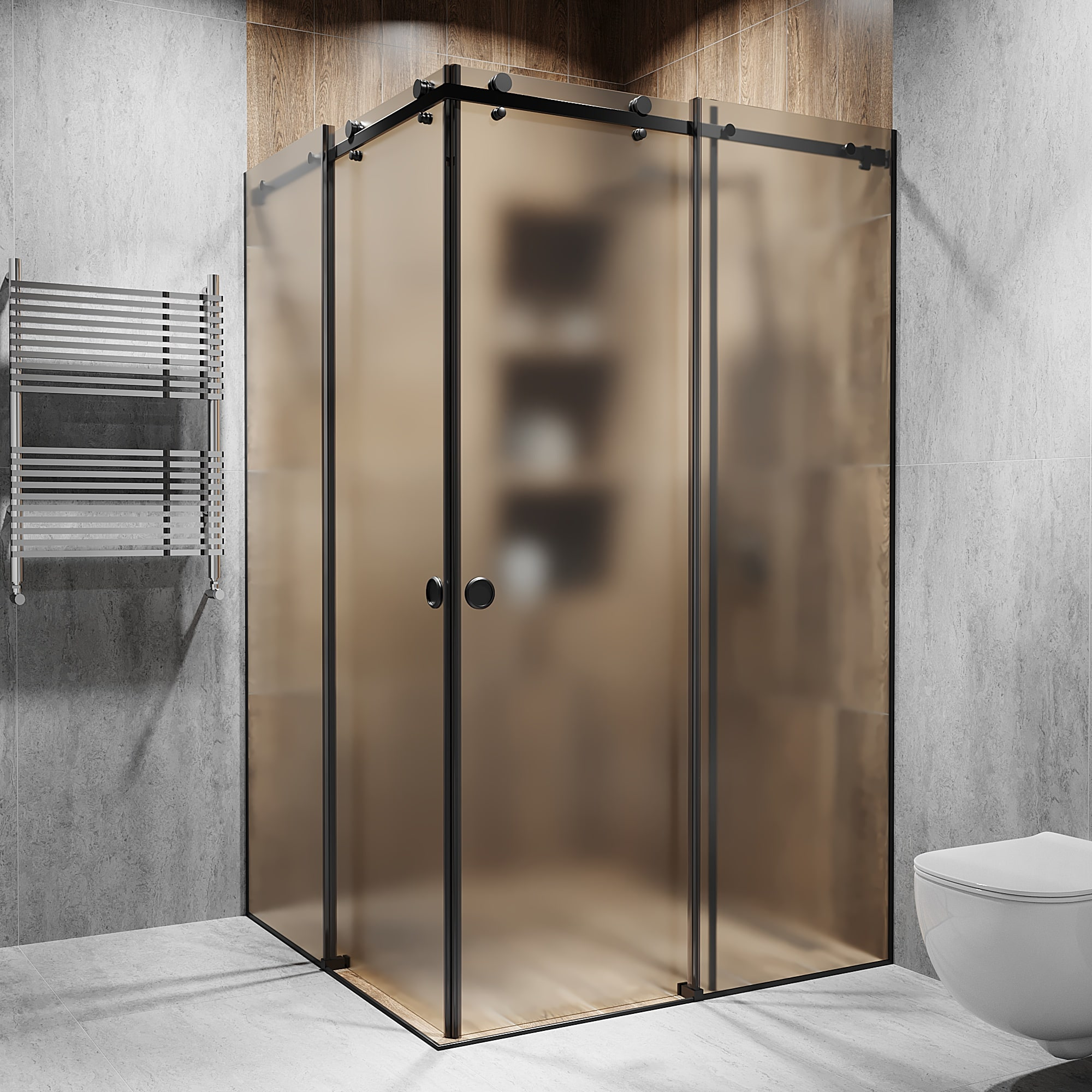 Опис Кутова розсувна душова кабіна з двома дверима 2000 мм, Прозоре, Матоване, Black - Чорна матова