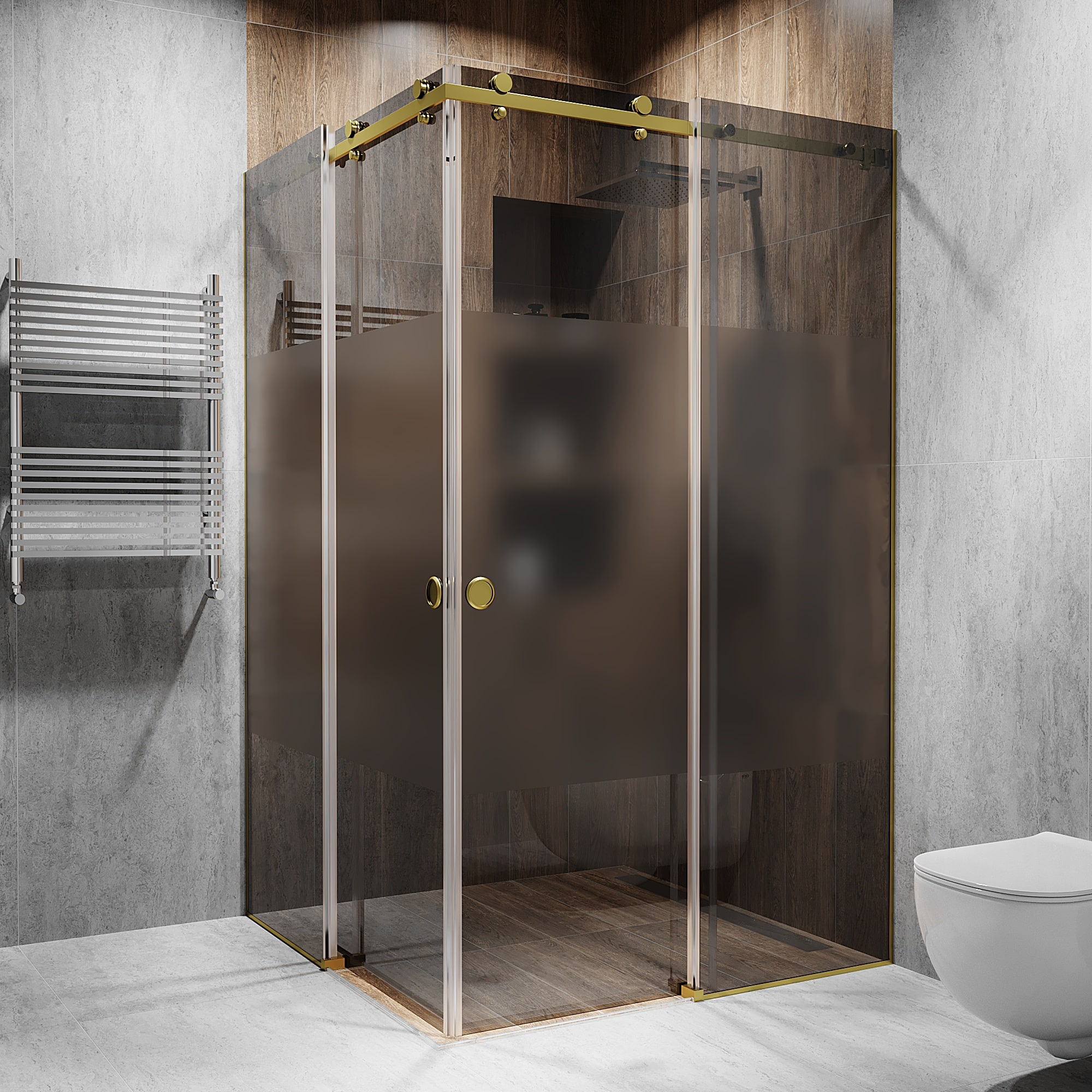 Опис Кутова розсувна душова кабіна з двома дверима 2000 мм, Графіт, Інтим зона, Gold - Золото поліроване
