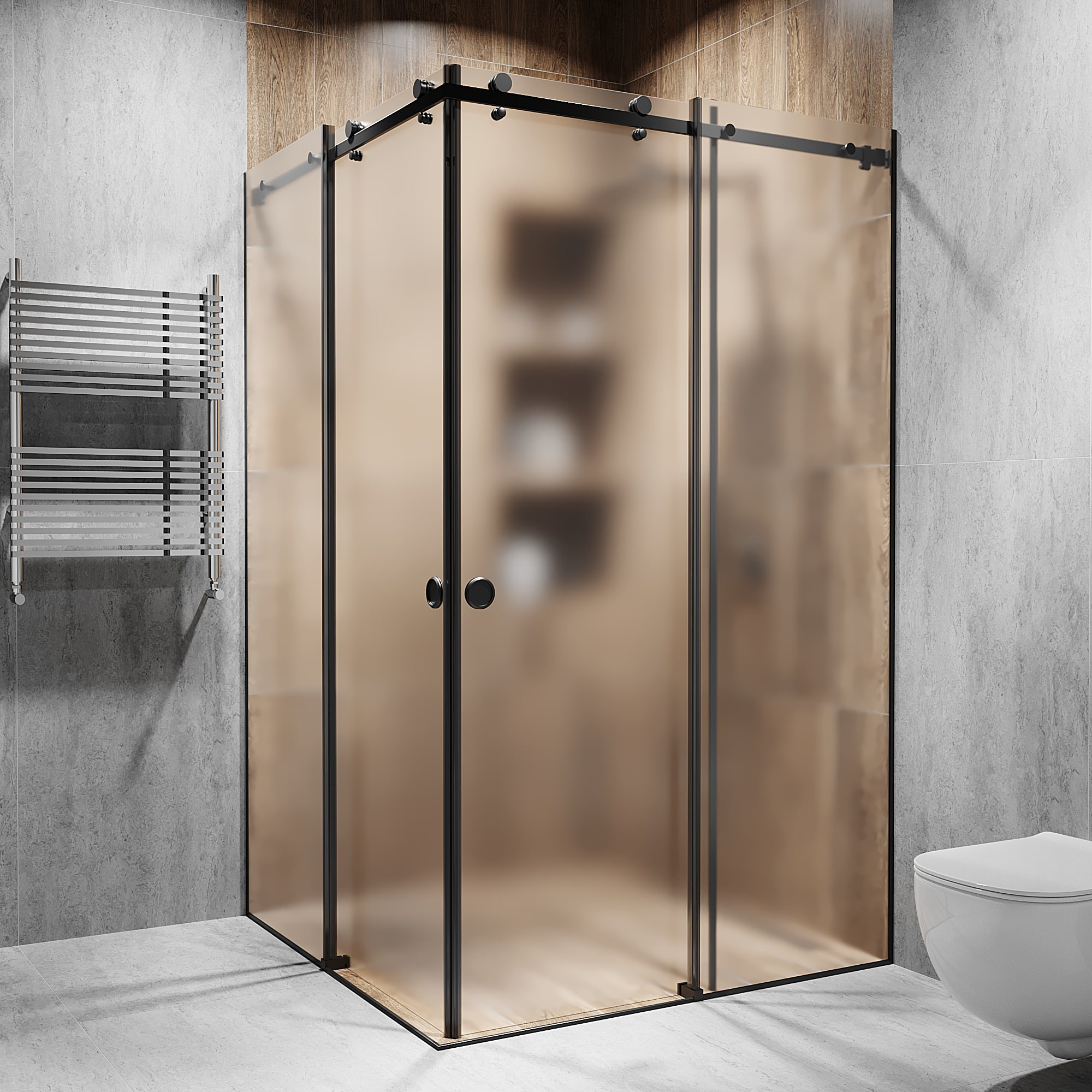 Опис Кутова розсувна душова кабіна з двома дверима 2000 мм, Діамант, Матоване, Black - Чорна матова