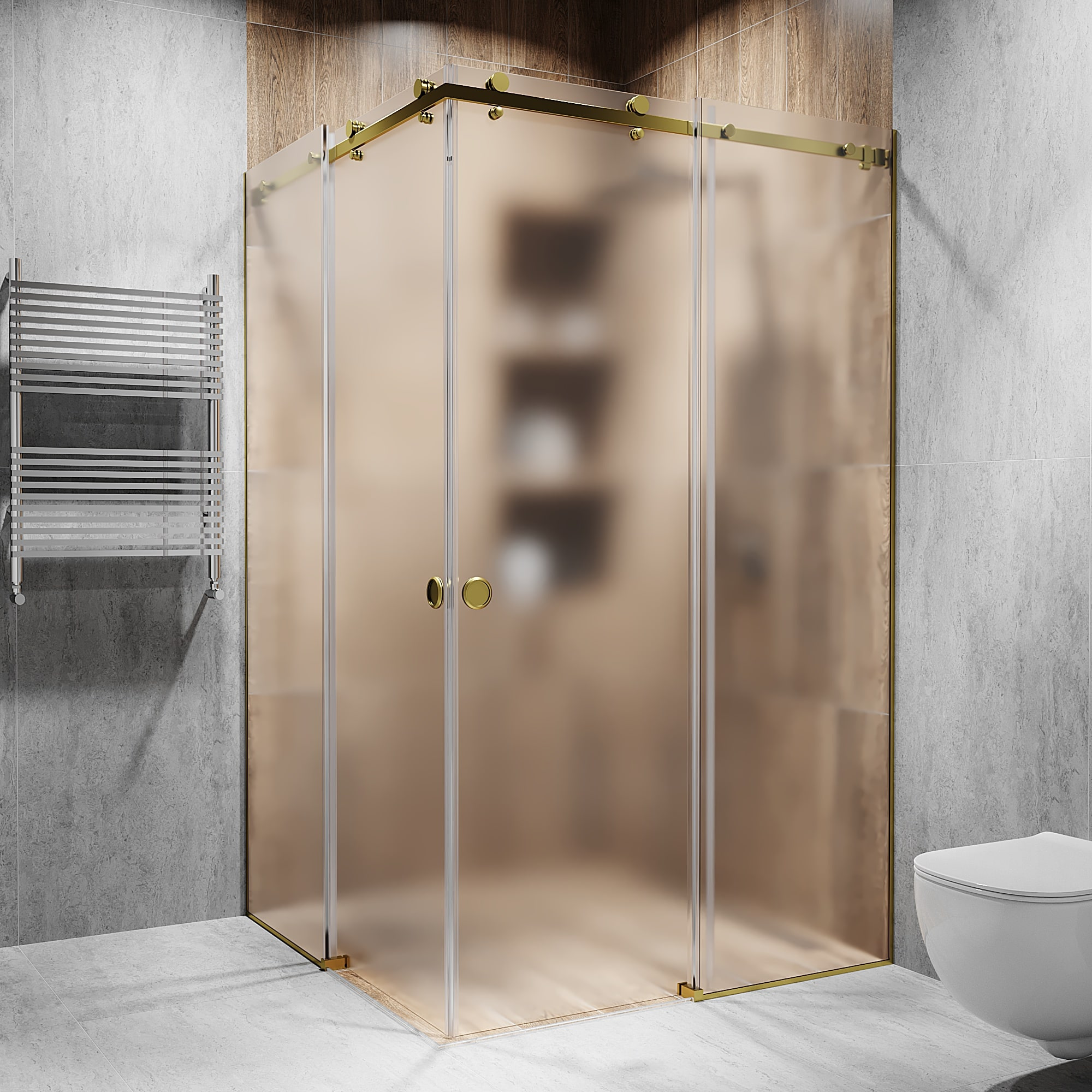 Опис Кутова розсувна душова кабіна з двома дверима 2000 мм, Діамант, Матоване, Gold - Золото поліроване