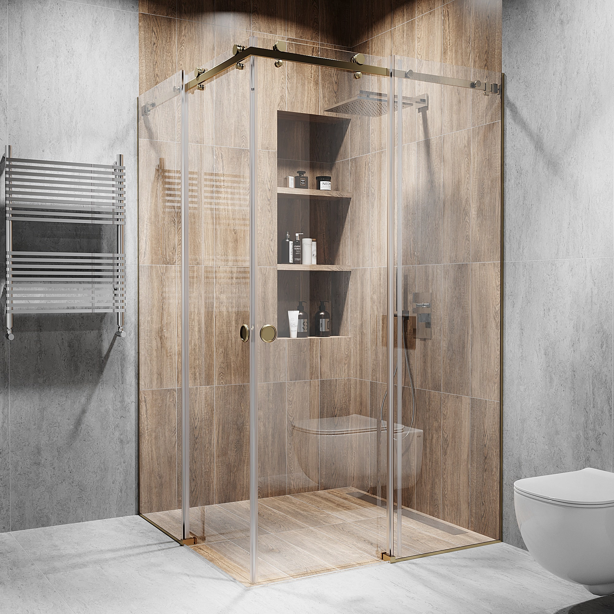 Кутова розсувна душова кабіна з двома дверима 2000 мм, Діамант, Без матування, Bronze - Бронза