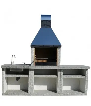 ТОВАР ТЯЖЕЛЫЙ! Перед оформлением заказа - уточняйте стоимость доставки. Уличный камин-барбекю «Гарден Шеф» комплекс XM – это прекрасная покупка для вашей дачи. Сделанный из высококачественного бетона в стиле фактурной крошки, уличный барбекю прост в эксплуатации и сборке. Важным аргументом выбора барбекю в стиле фактурной крошки является его демократическая цена. Так же, такое исполнение печи не требует окрашивания. Произведен только на лучшем экологически чистом, европейском сырье. В комплекте идут специальные жаростойкие плиты из шамотного камня, выдерживающие температуру до 1300 градусов, что позволит использовать дрова, уголь и другое высокотемпературное топливо. Самый большой ассортимент в Украине. Доставим в любую точку Украины. Срок годности более 50 лет. Характеристики: ???? Глубина: 59 см; ???? Ширина: 243 см; ???? Общая высота: 235 см; ???? Вес: 1240 кг; ???? Высота столешницы: 85 см; ???? Размер гриля: 60*40 см; ???? Тип топлива: дрова, древесный уголь; Комплектация: Комплект плит барбекю; Комплект плит стола - 2 шт; Дымосборник из нержавеющей стали (пищевая AISI 304); Плиты шамота подового; Комплект огнеупорных плит; Заслонка для углей из нержавейки; Рамка для шампуров и сетки; Инструкция по сборке и эксплуатации. Дополнительные опции: керамогранит на столешницу: +6300 грн; фасады (дверцы): +9900 грн; доводчики на фасады: +900 грн; зольный ящик + колосниковая решетка: +3900 грн; *Вид изделий и цвет - может незначительно отличаться от представленных на фотографиях. **Мелкие сколы, воздушные раковины на бетоне не являются браком и ни как не повлияют на эксплуатацию.